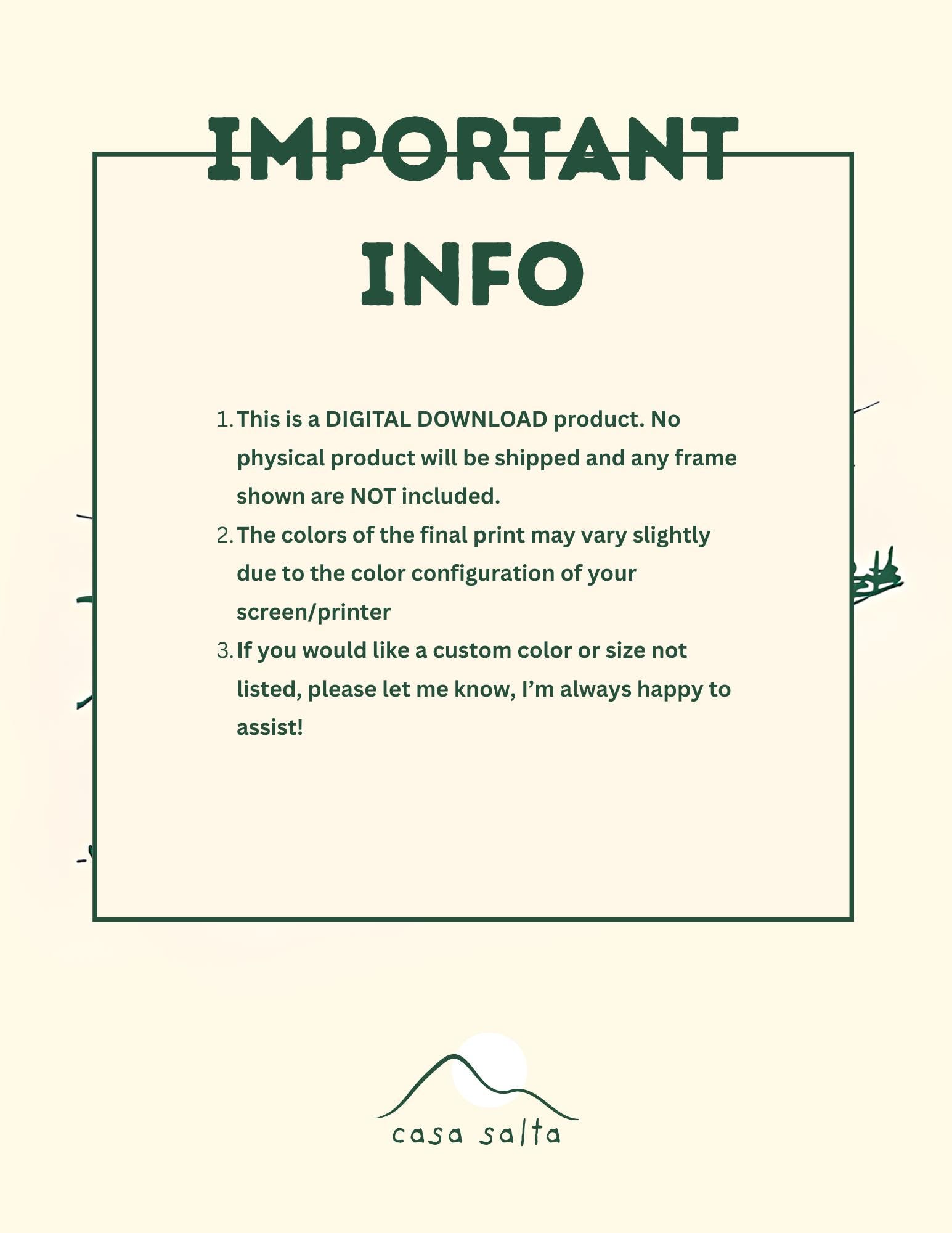 At Casa Salta, we believe art should be joyful and accessible. Our printable art is the easiest way to bring instant personality and style to your home. It also makes a beautiful and thoughtful last-minute gift!