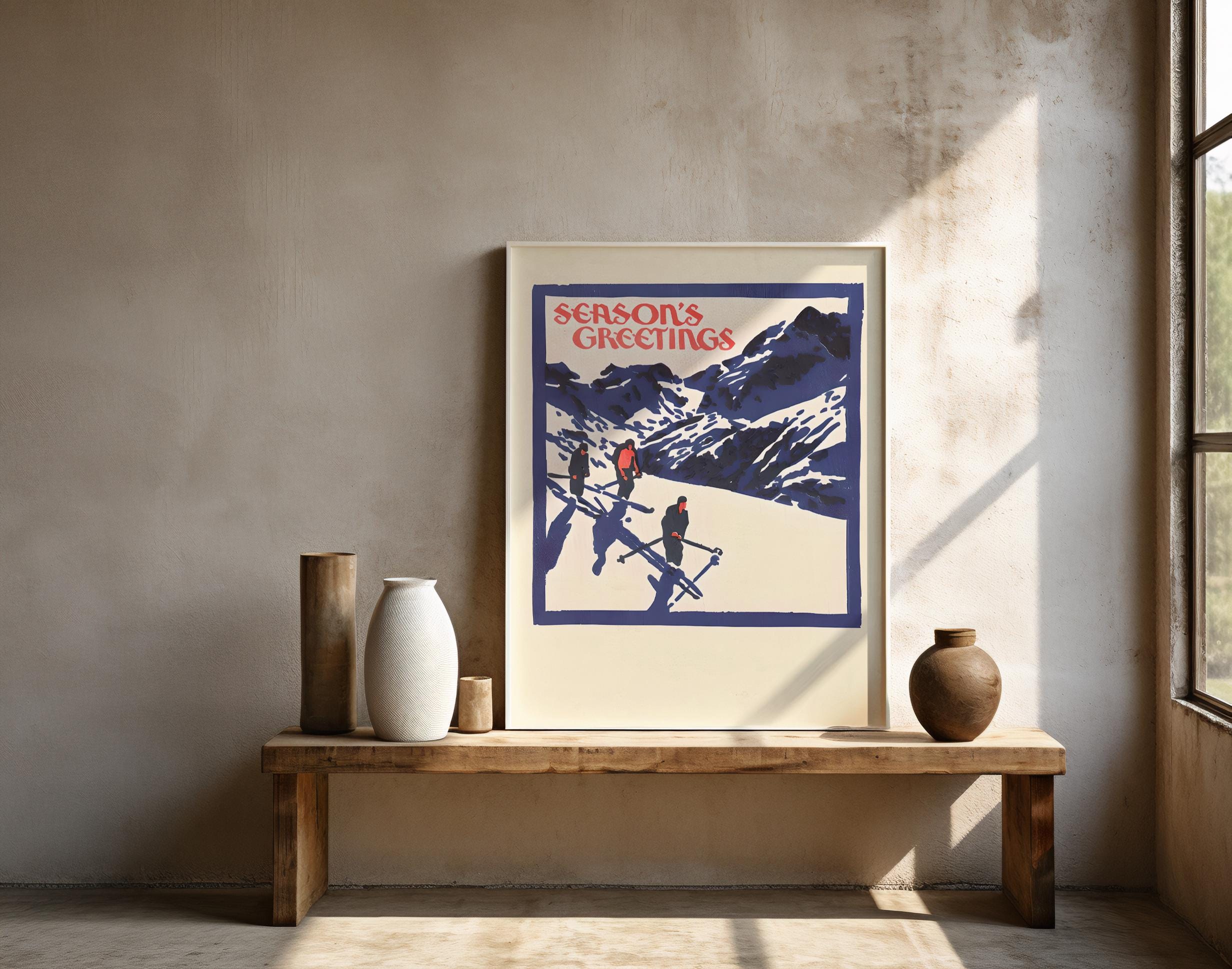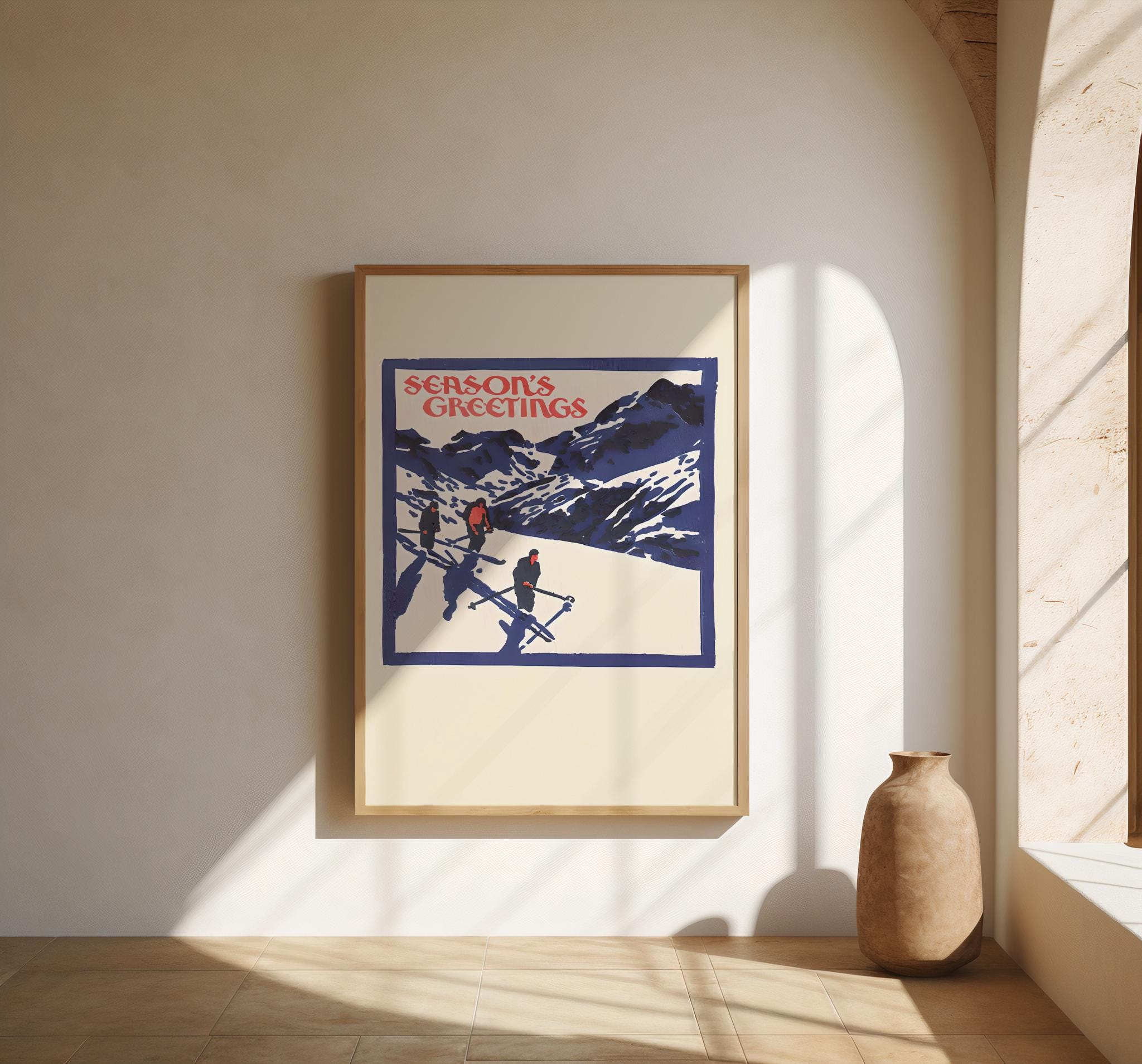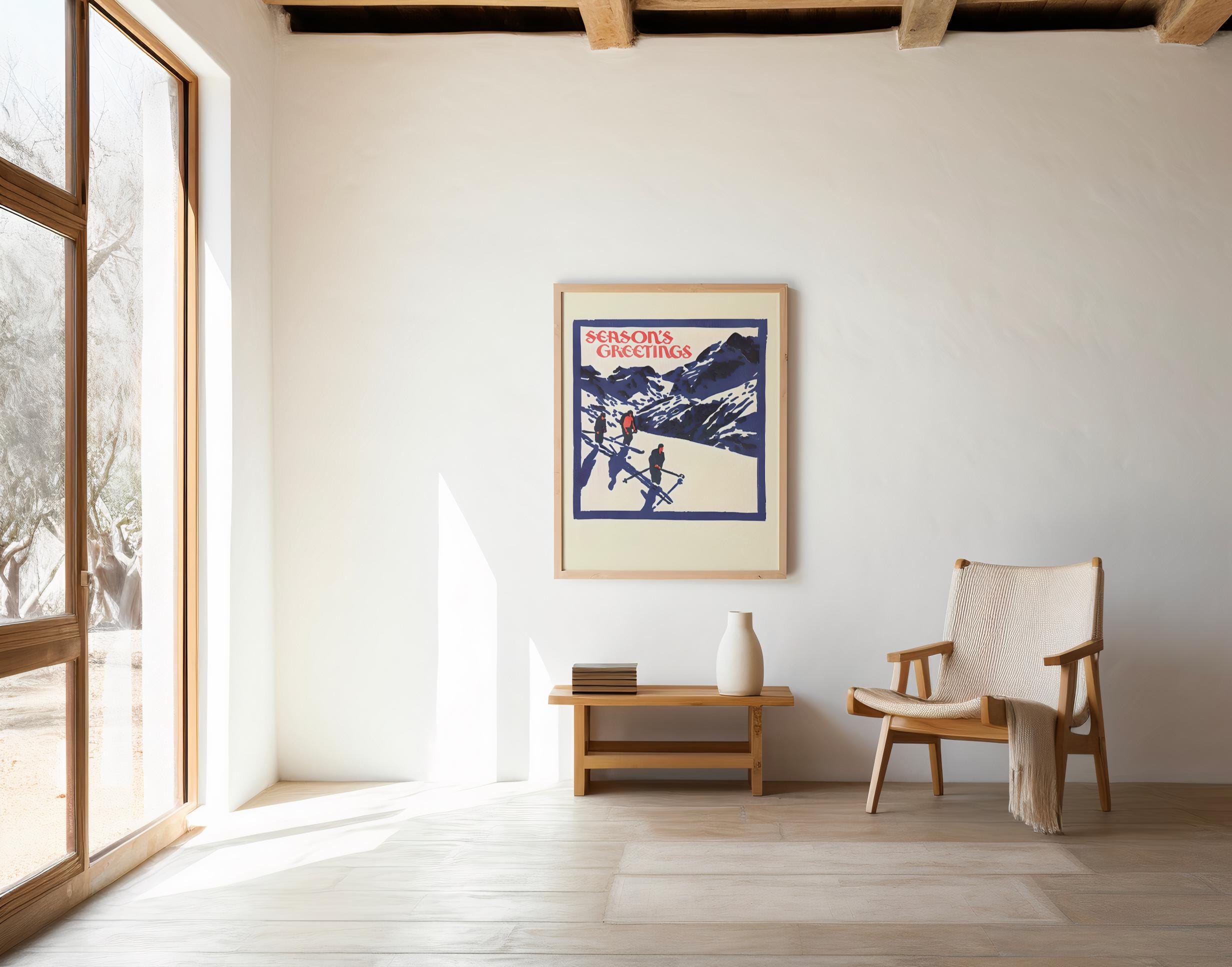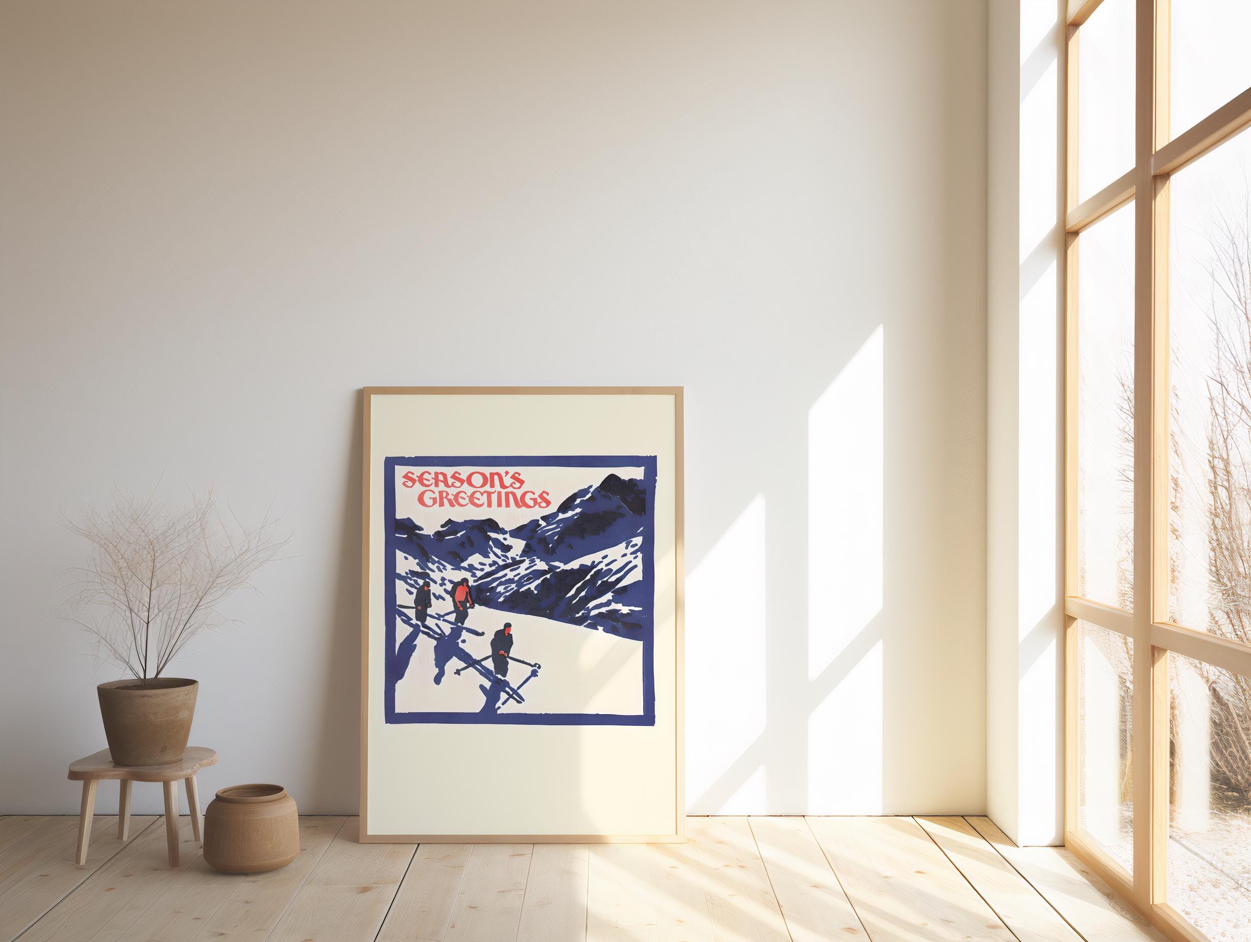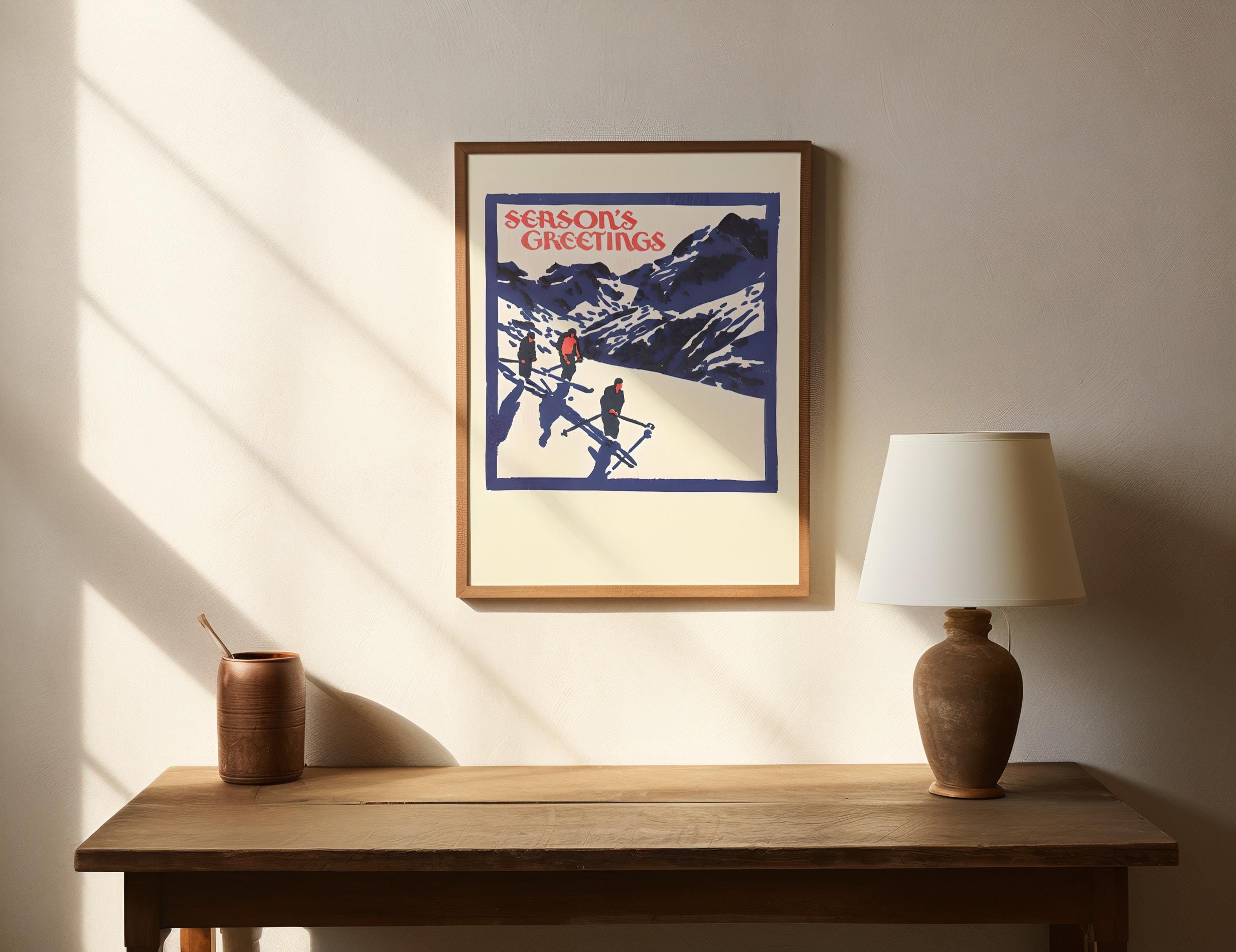 Vintage Ski Christmas Art Print · Retro Season’s Greetings Poster (Digital Download)