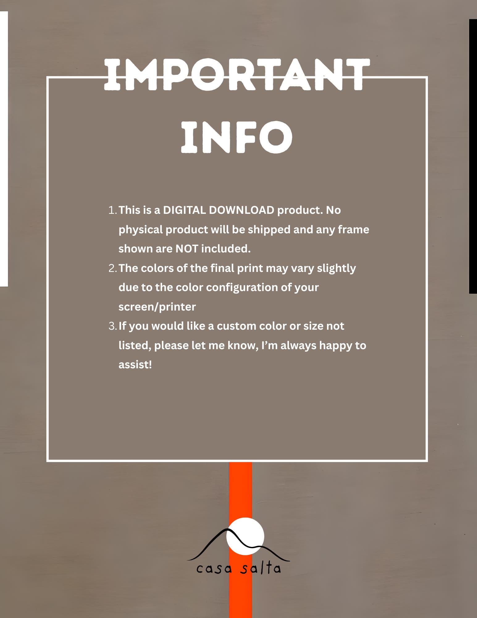 At Casa Salta, we believe art should be joyful and accessible. Our printable art is the easiest way to bring instant personality and style to your home. It also makes a beautiful and thoughtful last-minute gift!