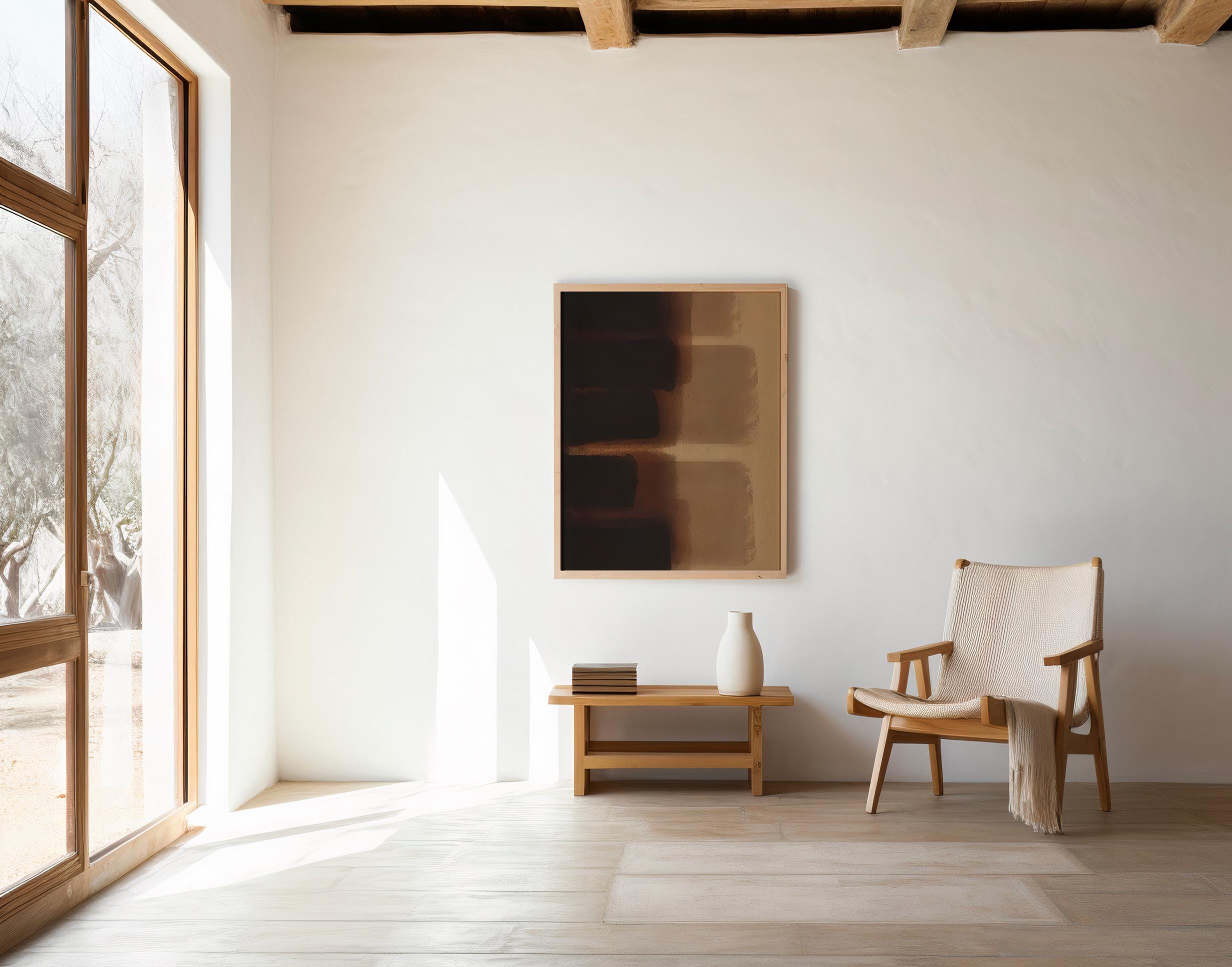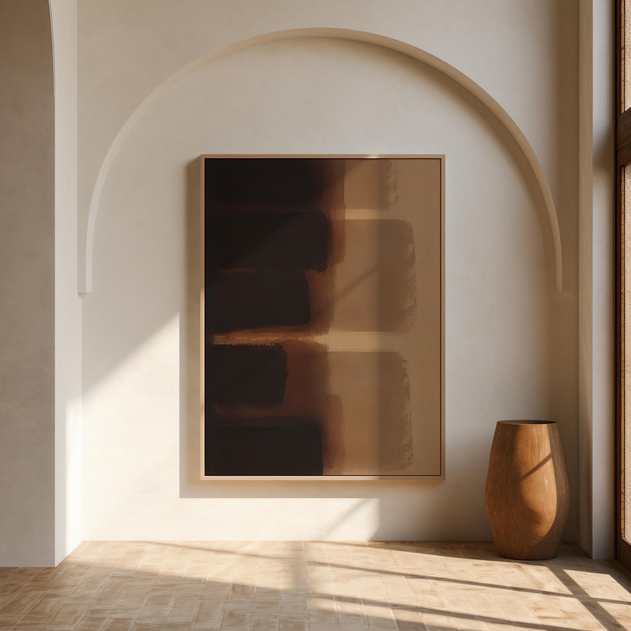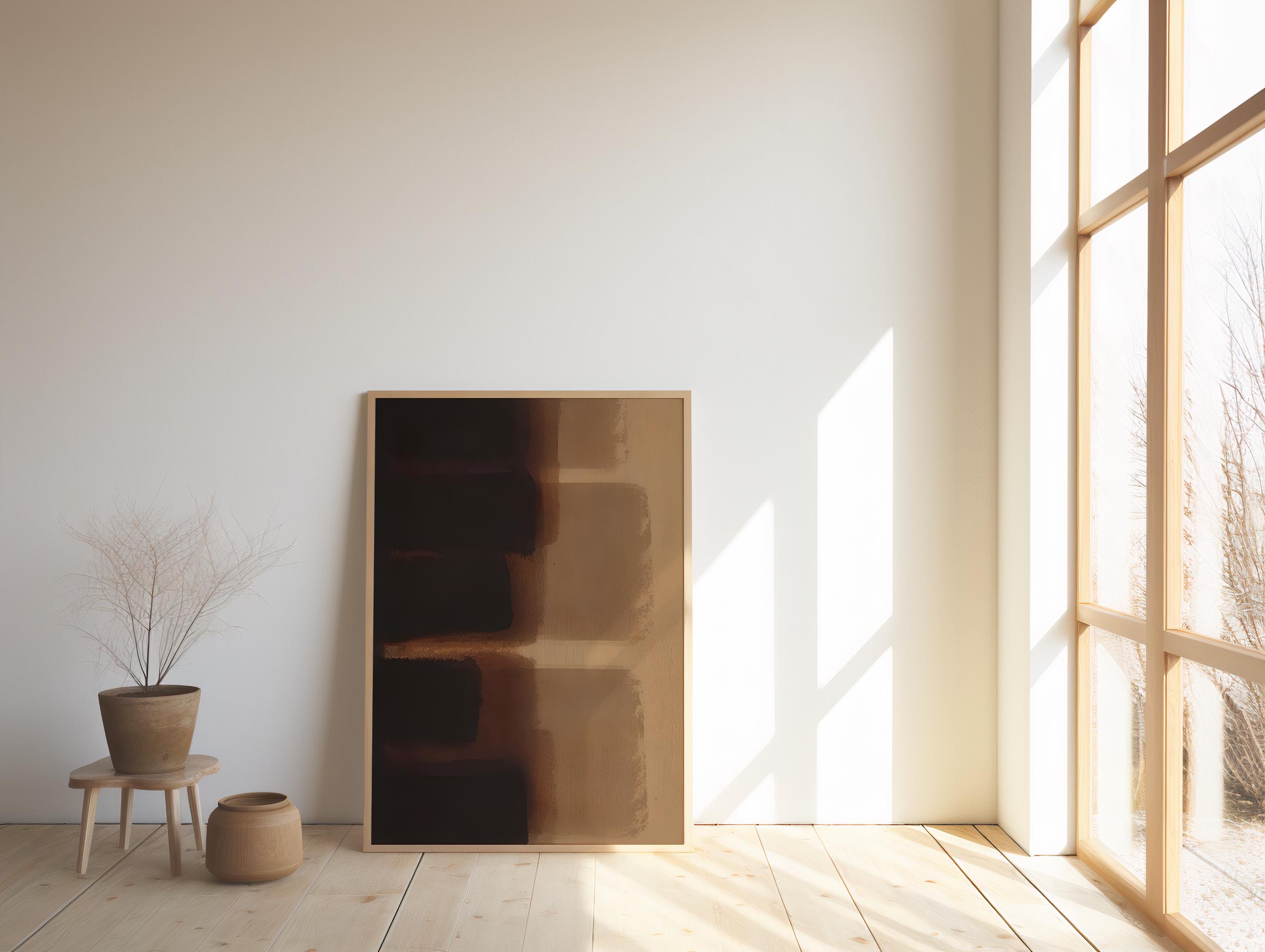 A warm, atmospheric brown abstract texture print with deep espresso tones blending into soft beige washes. The layered brushwork creates a moody, grounded composition that elevates any modern, organic, Japandi, or neutral interior. Perfect for living rooms, bedrooms, offices, and gallery walls.