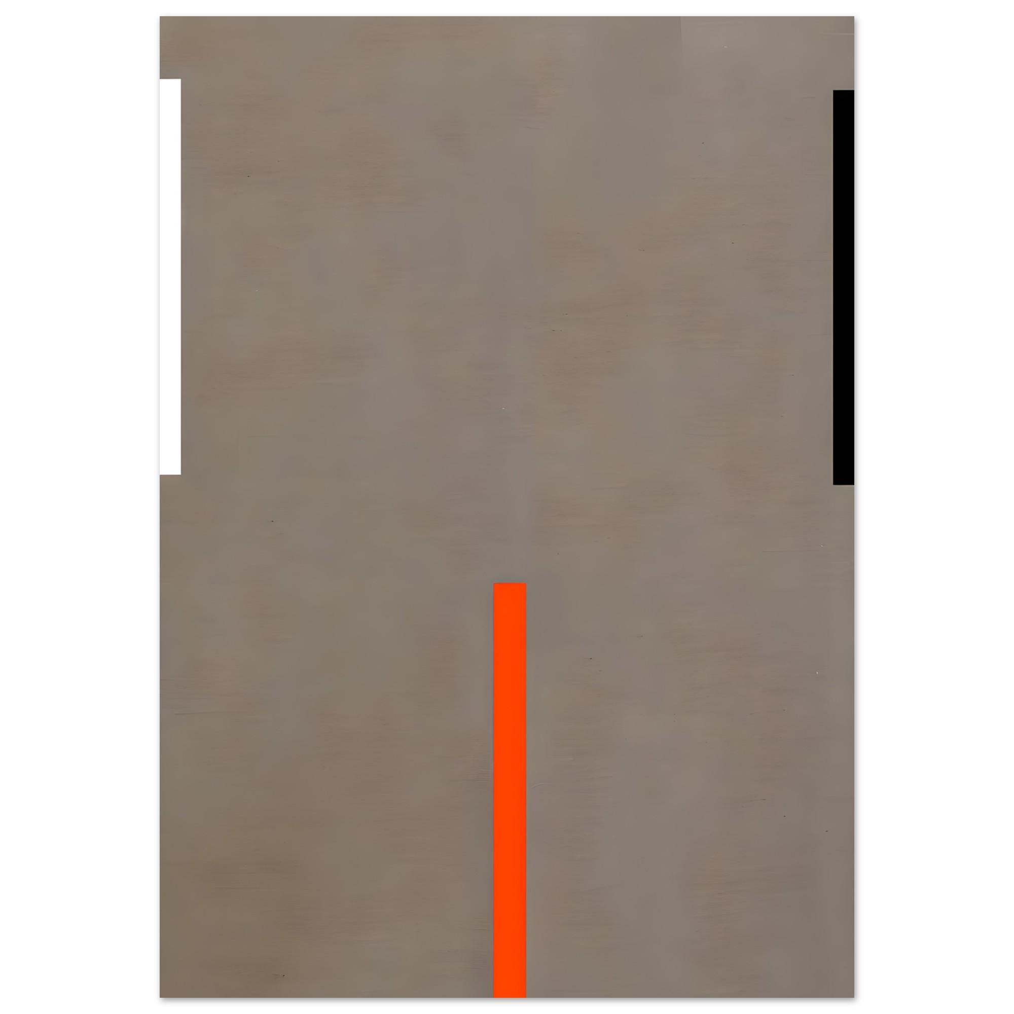 This minimalist fine art poster features a warm taupe backdrop contrasted with bold vertical accents in bright orange and deep black. The simplicity and clean geometry create a refined, modern aesthetic ideal for contemporary, organic modern, and neutral-inspired interiors. Its understated design makes it a perfect anchor piece for living rooms, offices, hallways, and curated gallery walls.