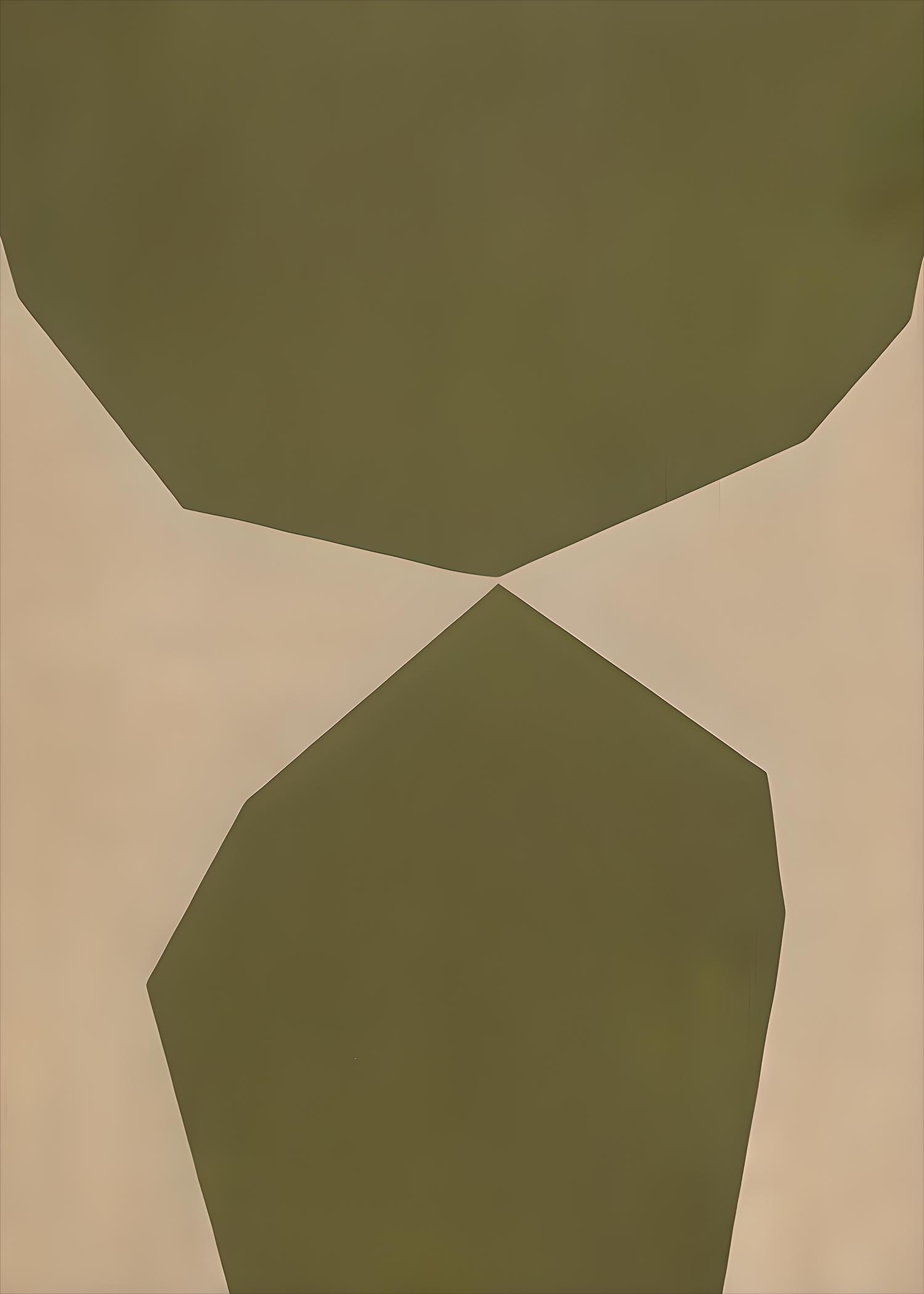 A bold and modern abstract artwork featuring rich olive green geometric forms against a soft neutral background. Clean, sculptural shapes make this piece perfect for minimalist, contemporary, Japandi, or earthy organic interiors. Designed to bring depth, warmth, and architectural balance to any digital gallery wall.