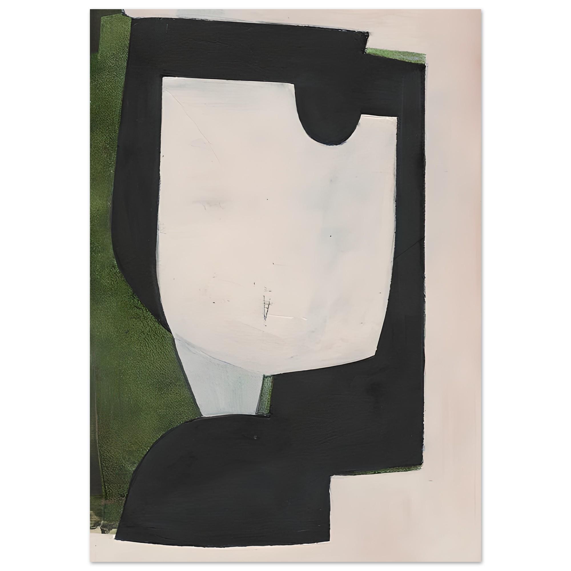 This abstract fine art poster features bold black forms layered with deep green and soft neutral tones, creating a grounded yet expressive composition. The organic shapes and painterly texture give the piece a modern, architectural feel that works effortlessly in organic modern, minimalist, and contemporary interiors.
