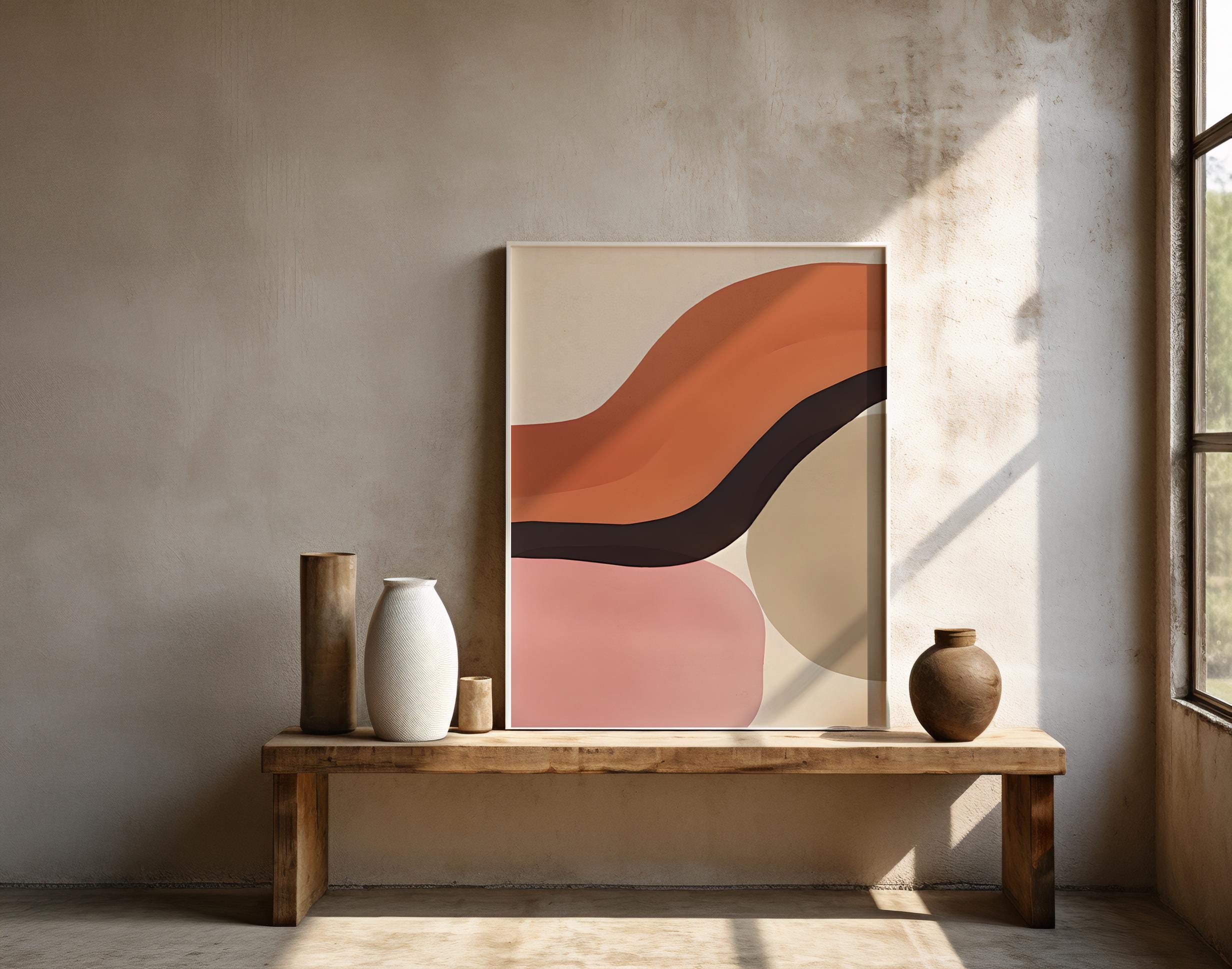Designed to bring warmth and movement into a space, this piece works effortlessly in organic modern, minimalist, contemporary, and neutral interiors—ideal as a statement artwork or as part of a cohesive gallery wall.
