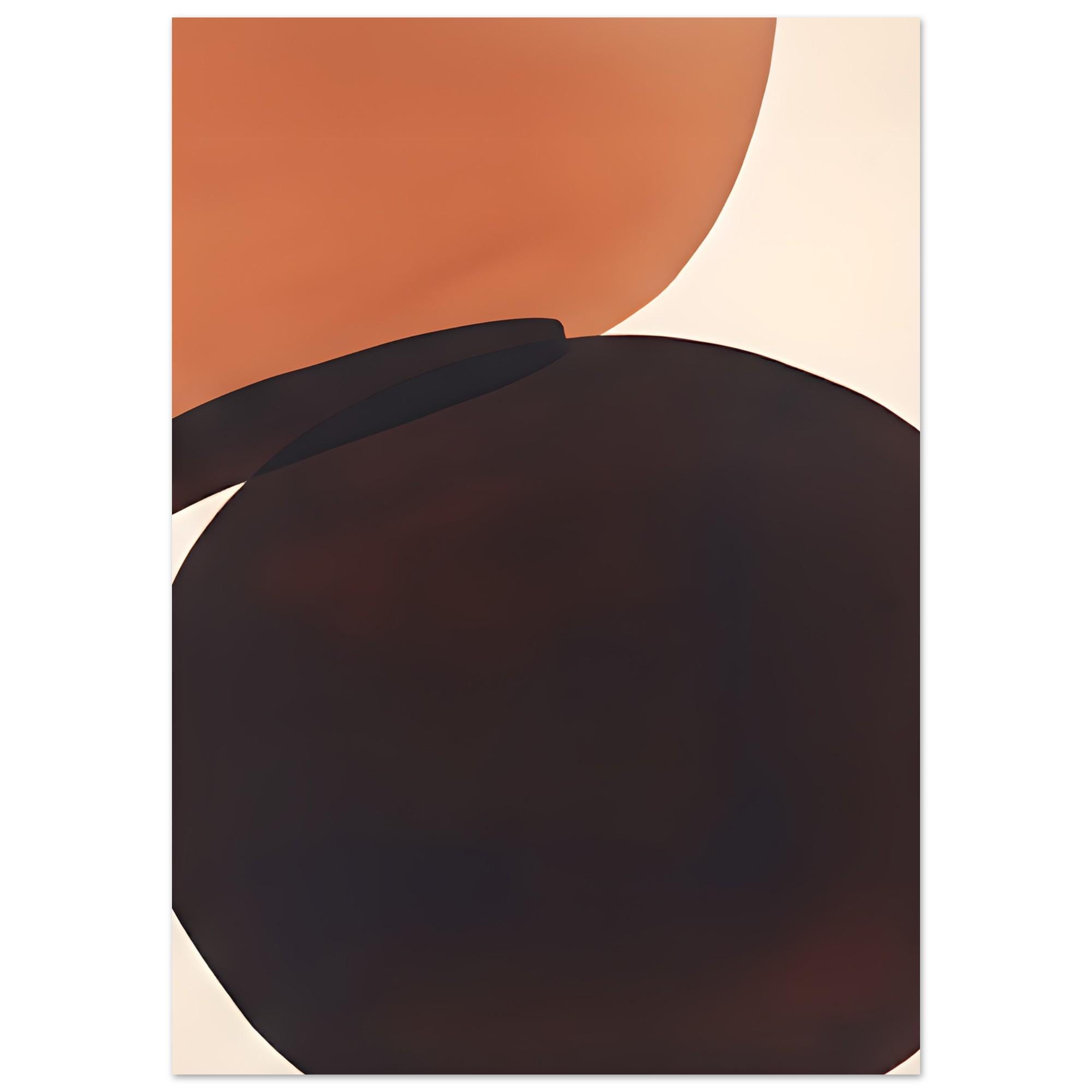 This abstract fine art poster features layered organic forms in deep brown, warm orange, and soft neutral tones. The smooth curves and subtle gradients create a grounded, atmospheric composition that feels bold yet calming.