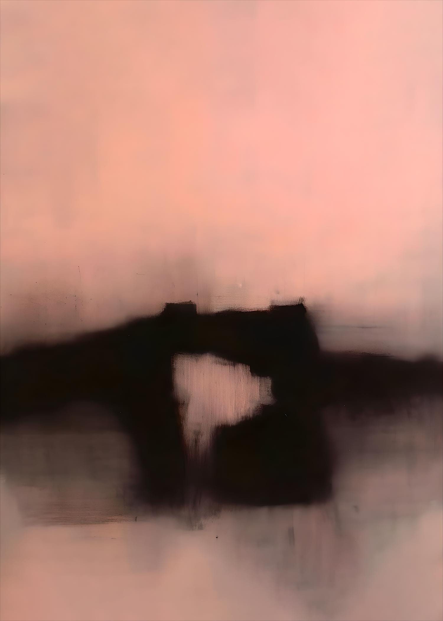 A soft, atmospheric abstract artwork featuring muted blush, warm beige, and deep charcoal tones. The blurred forms and painterly texture create a calm, moody composition that feels minimalist, modern, and quietly expressive.
