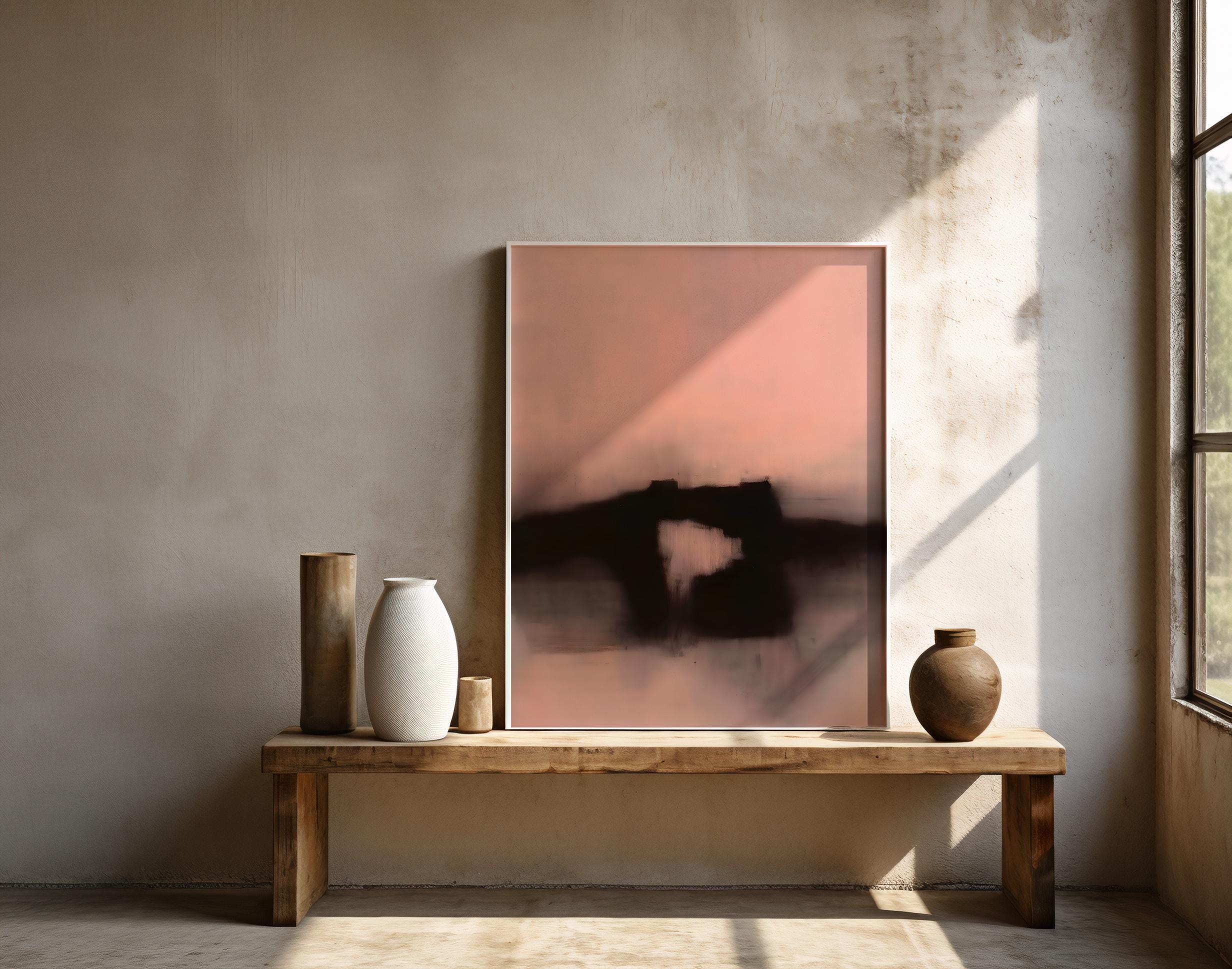 Abstract Blush Neutral Wall Art | Soft Minimal Landscape | Framed Poster