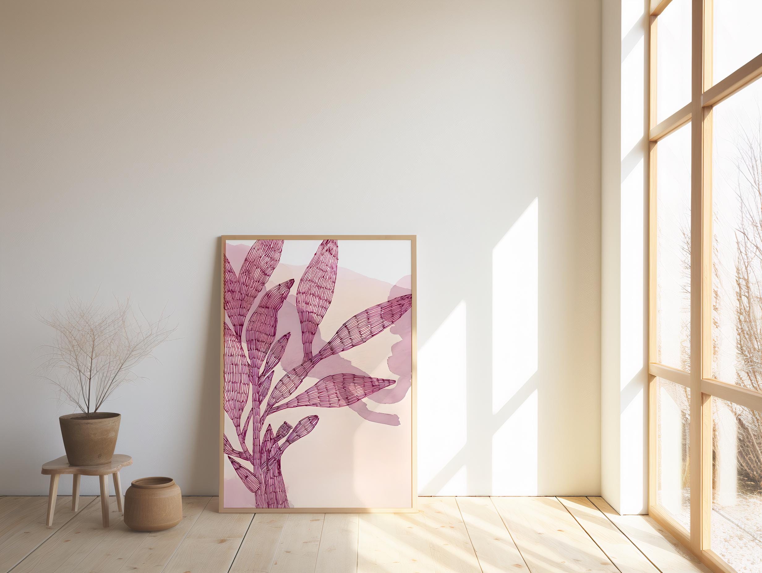 A refined fine art poster featuring minimalist botanical line art layered over soft blush and neutral watercolor tones. Delicate linear detailing and organic floral forms create a calm, feminine, and modern composition that feels light, elegant, and timeless—perfect for serene, design-forward spaces.