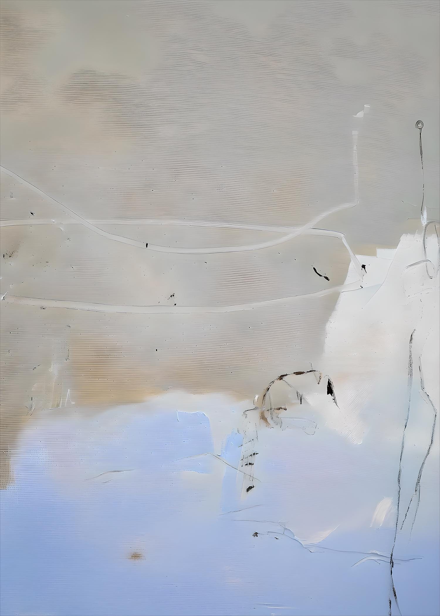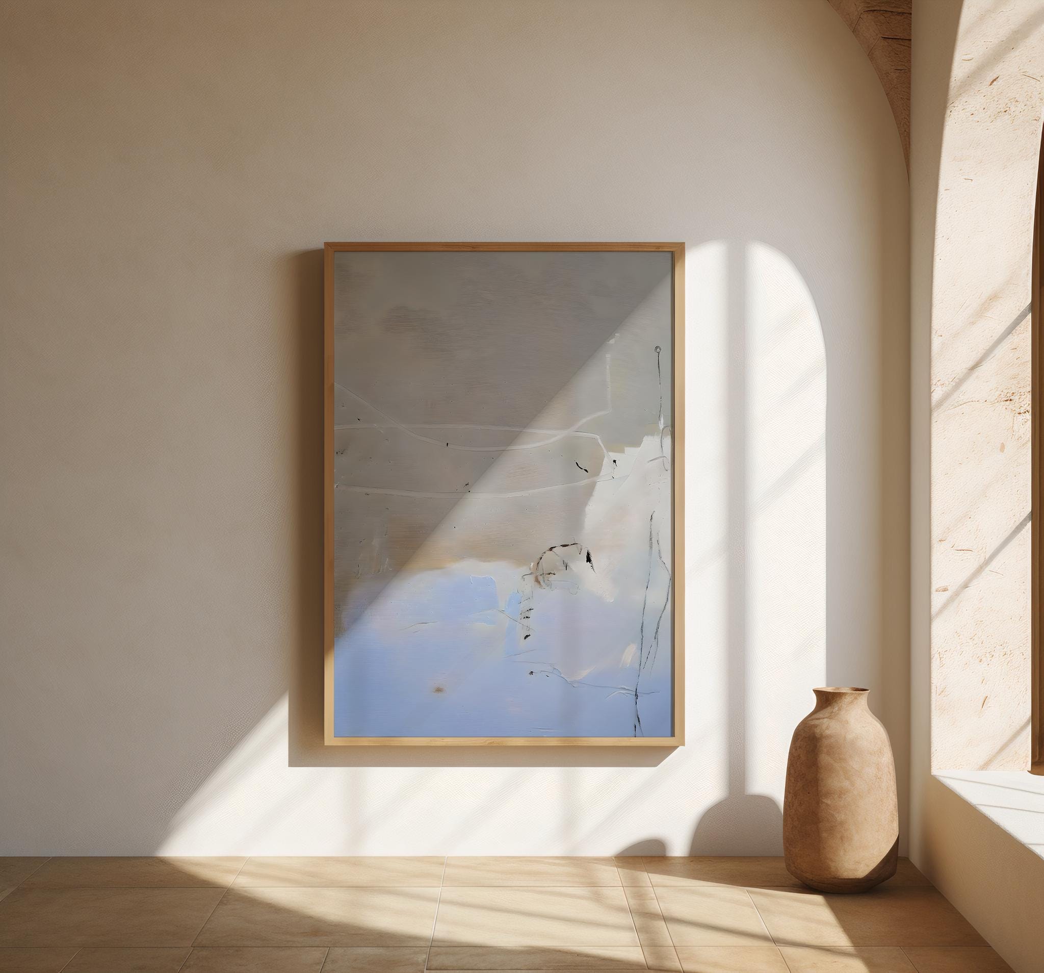 This minimalist abstract artwork features soft neutral tones layered with subtle texture and organic movement. Inspired by natural landscapes and atmospheric balance, this piece brings a calm, refined presence to modern interiors without overpowering the space.
