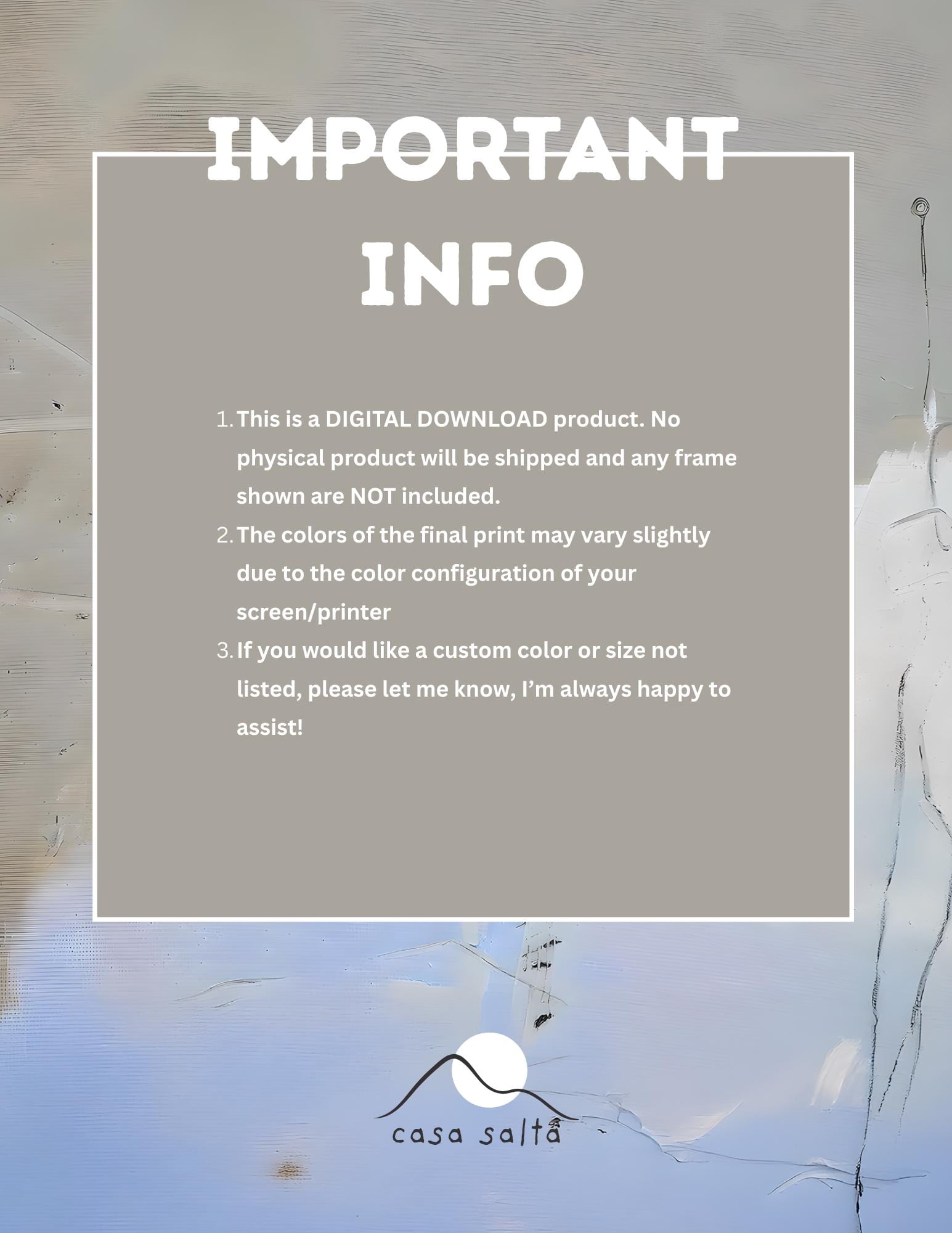 Designed to work beautifully in minimalist, organic modern, and contemporary homes, this digital artwork allows you to print in the size that best suits your space.