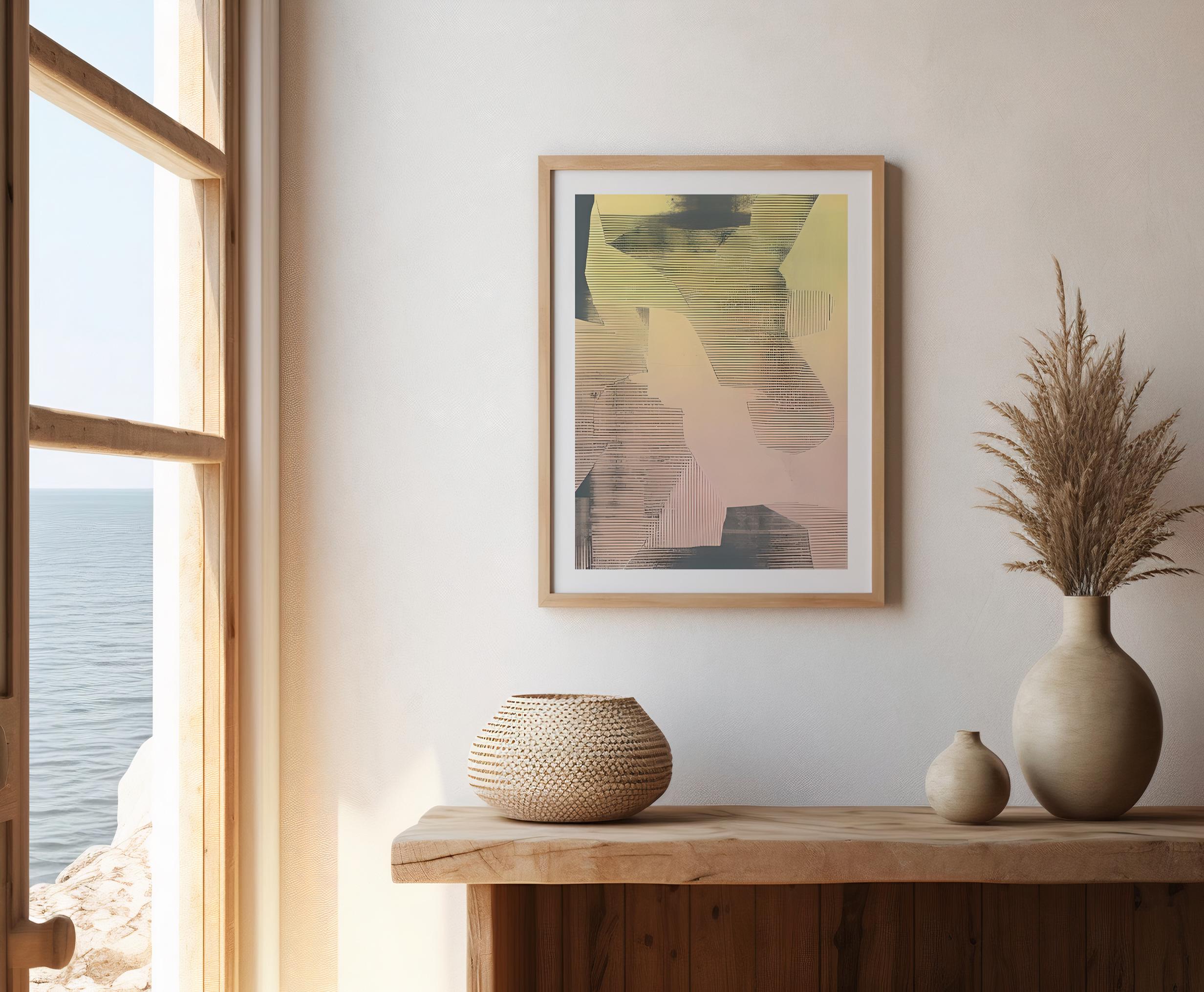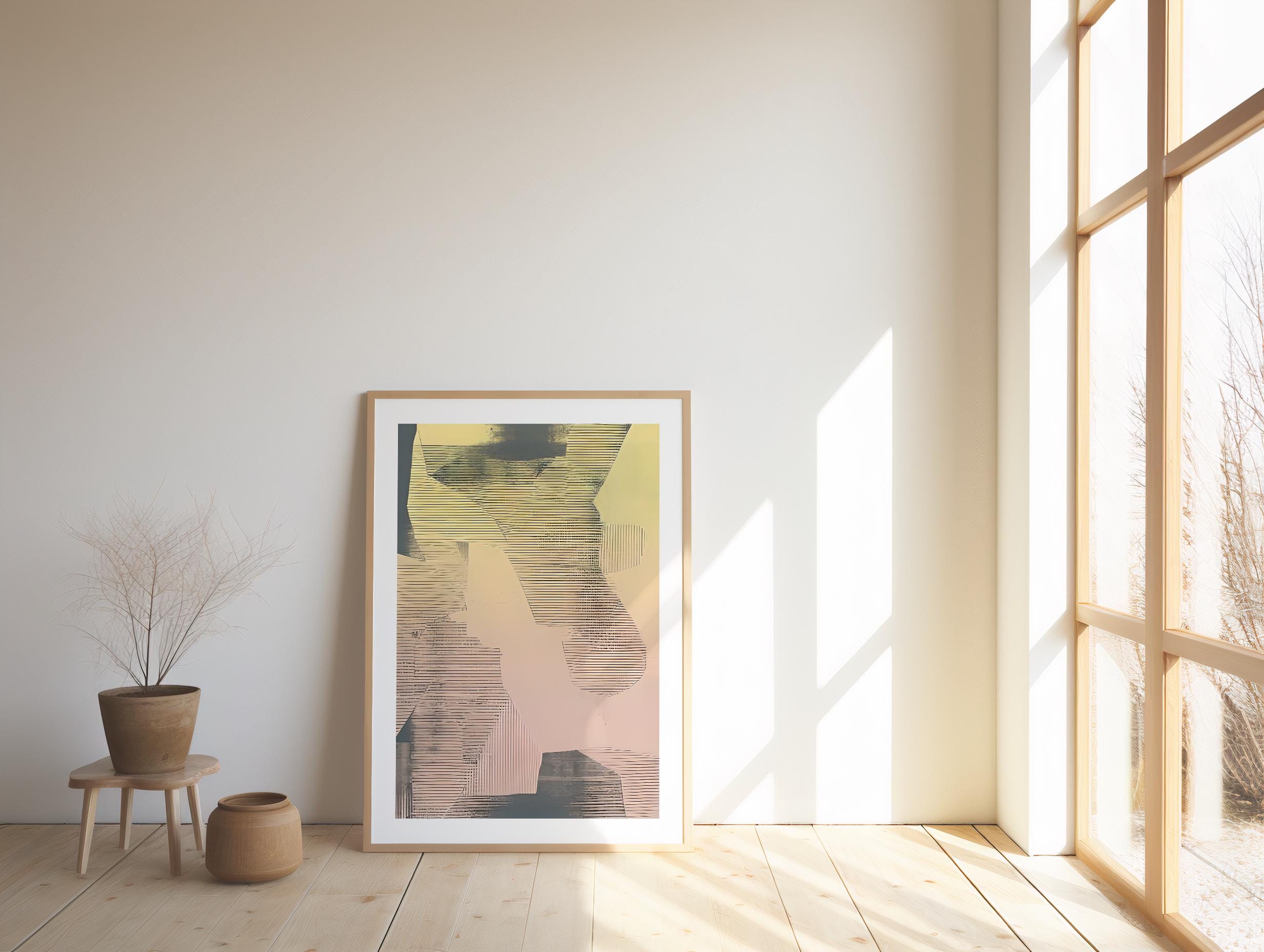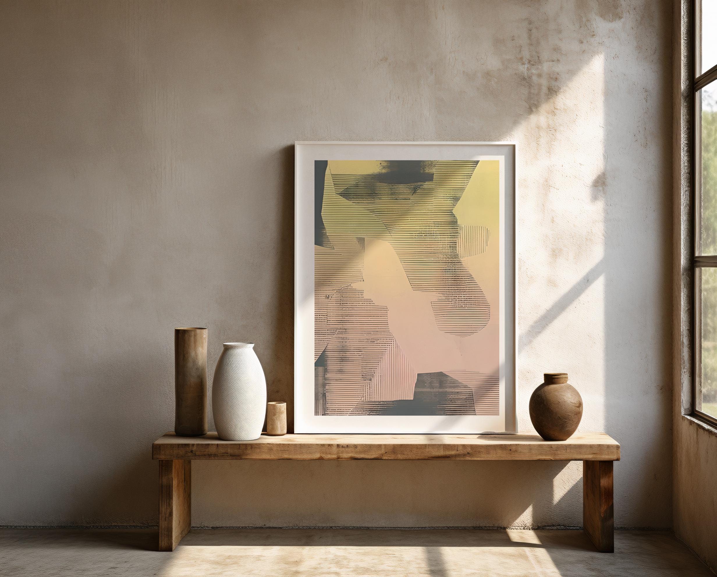A refined abstract composition featuring layered neutral tones, soft gradients, and linear textures. This fine art poster brings warmth, balance, and a quiet modern presence to any space—perfect for minimalist, Japandi, and organic modern interiors.