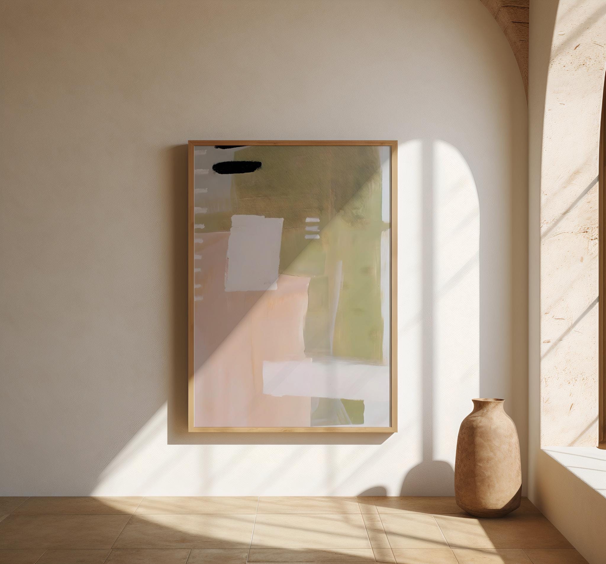 Abstract Neutral Wall Art – Soft Sage & Blush Minimalist Fine Art Poster
