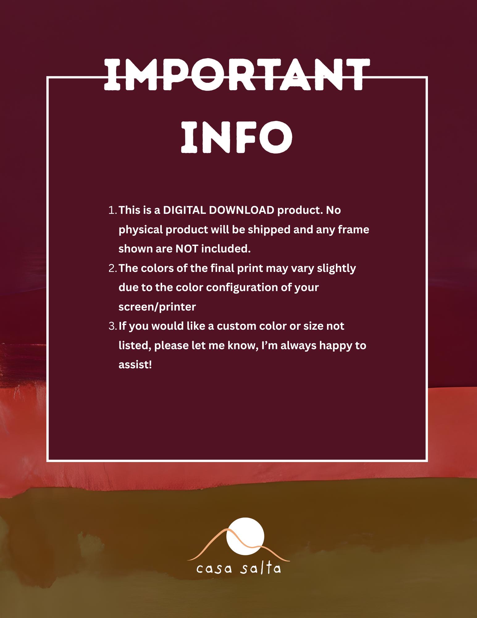 At Casa Salta, we believe art should be joyful and accessible. Our printable art is the easiest way to bring instant personality and style to your home. It also makes a beautiful and thoughtful last-minute gift!