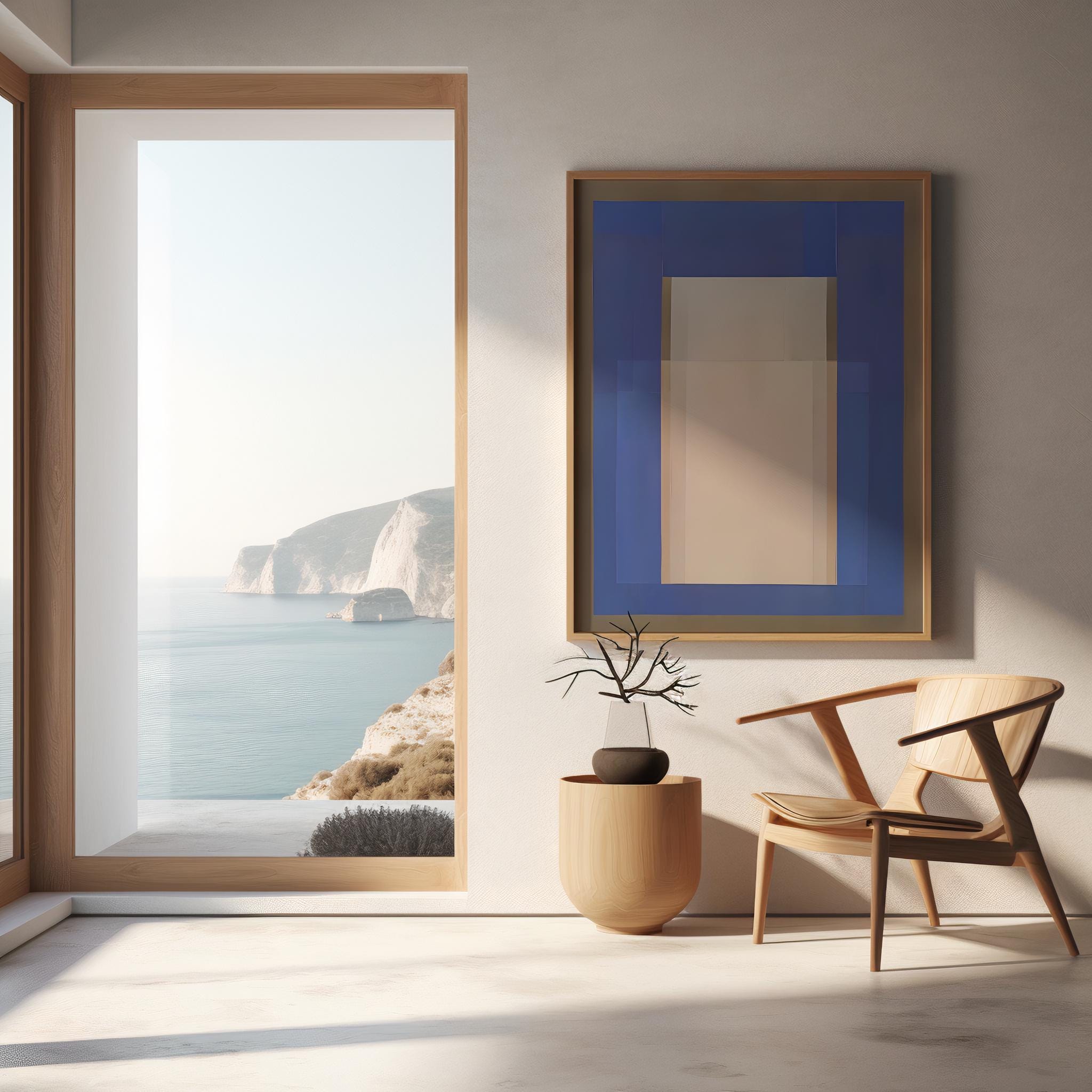 Blue & Beige Minimal Abstract Wall Art | Fine Art Poster
