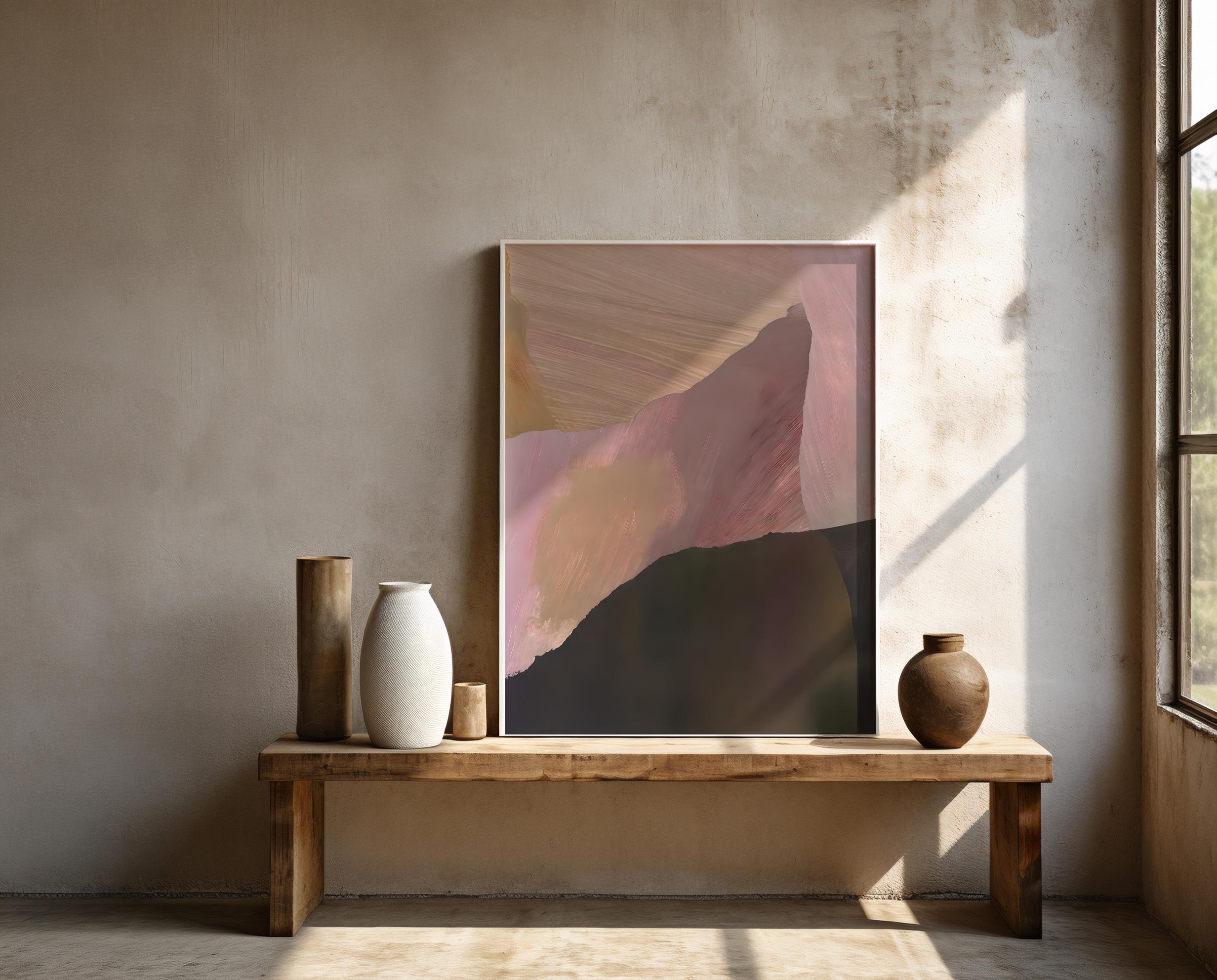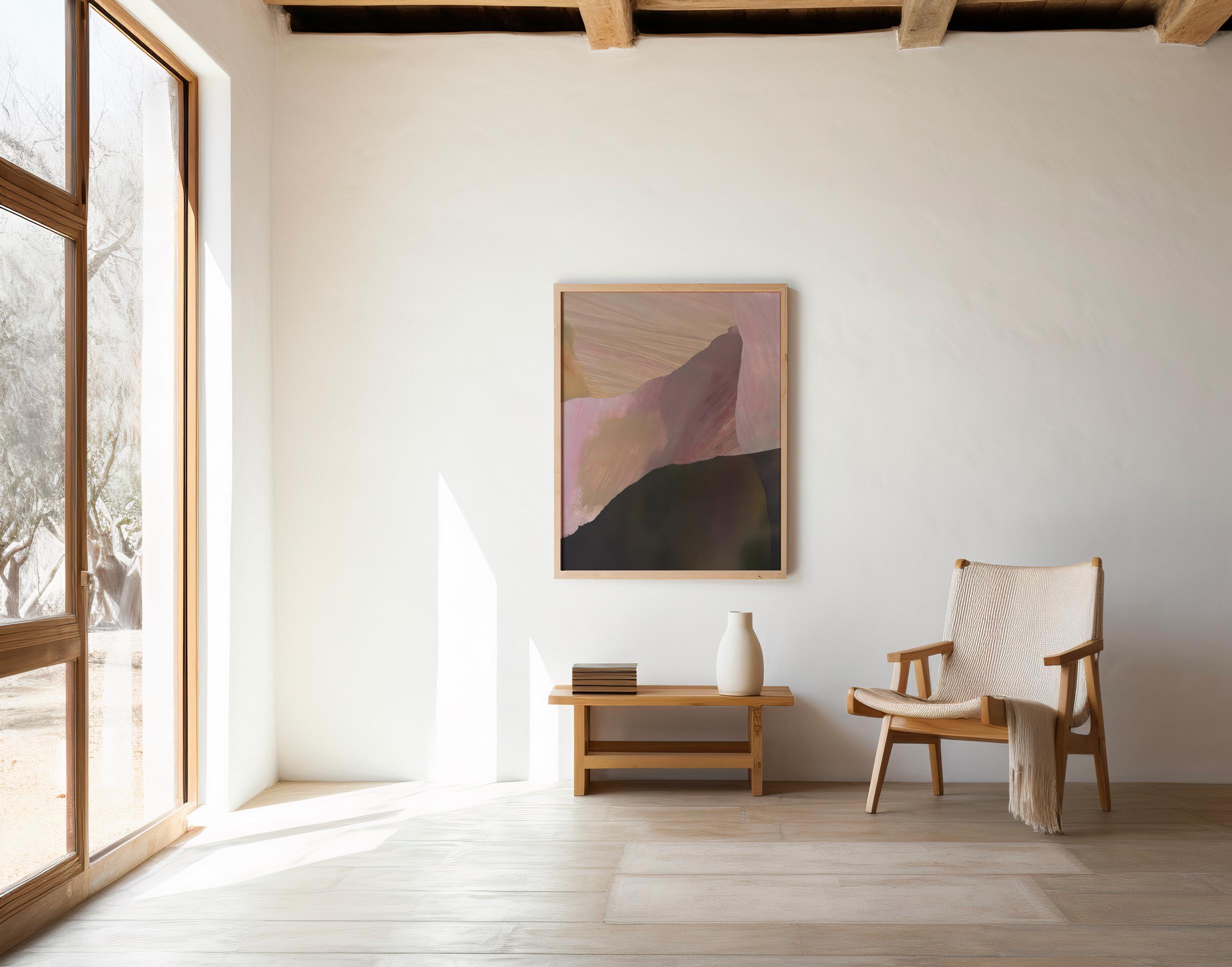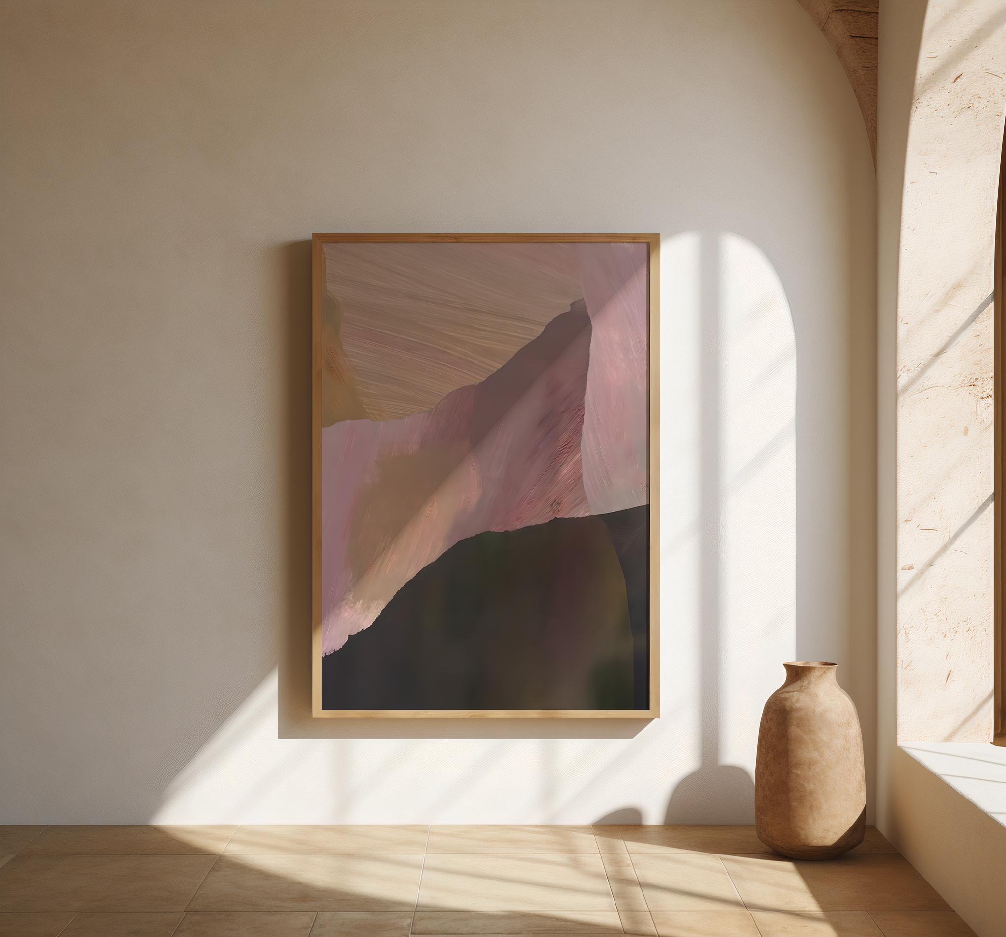 A contemporary abstract artwork defined by layered earthy tones and expressive painterly movement. Organic brush-style strokes and subtle depth create a modern, elevated composition that feels grounded, warm, and intentional. Designed to complement organic modern, minimalist, Japandi, and contemporary interiors.