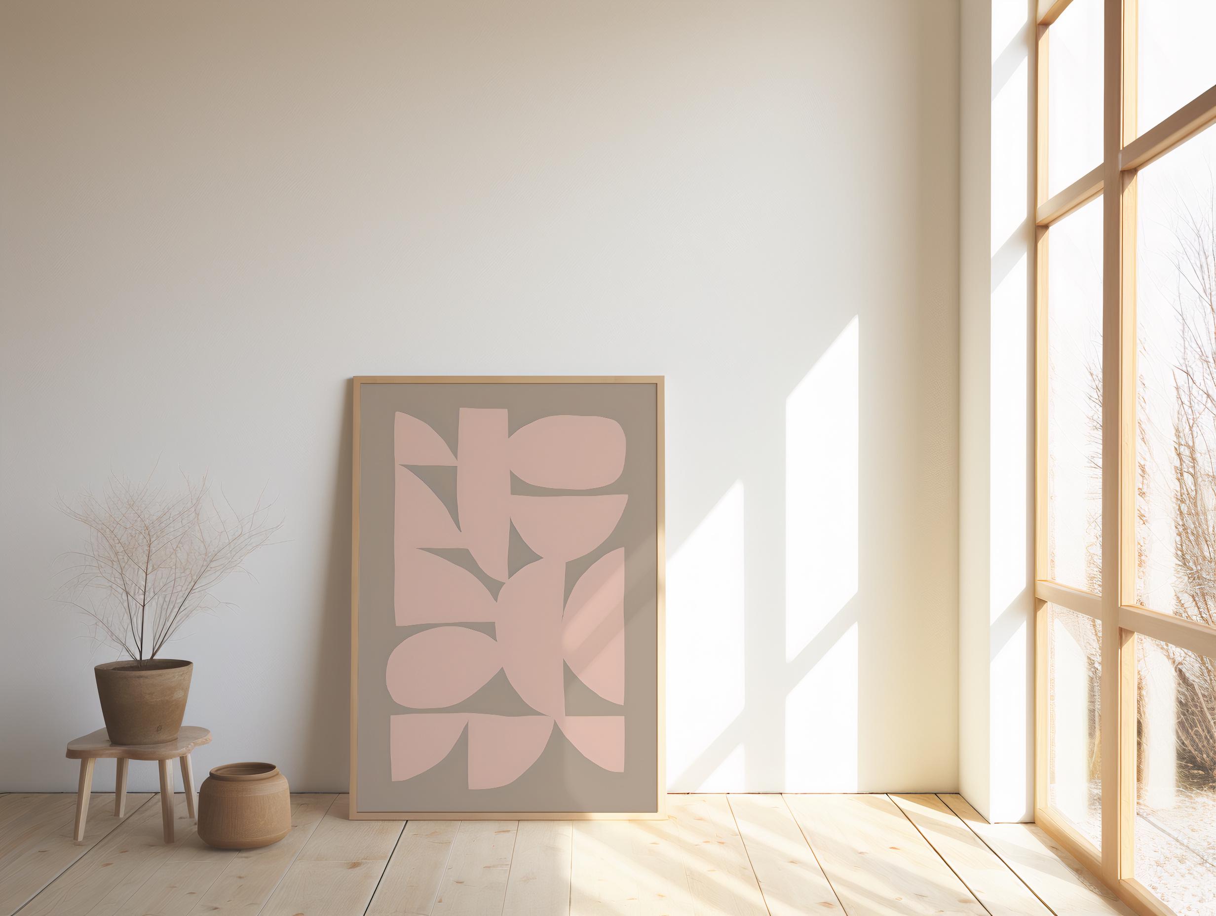 A refined abstract composition featuring soft blush organic shapes layered over a warm taupe background. The flowing, minimalist forms create a calm, elevated aesthetic designed for modern, neutral, and design-forward interiors.
