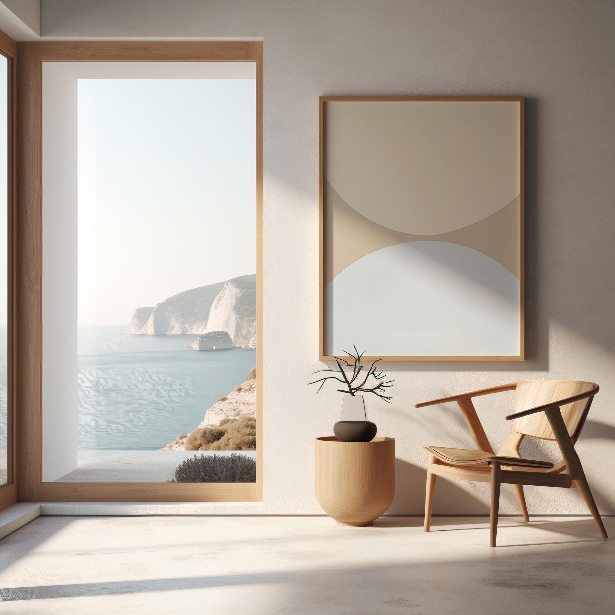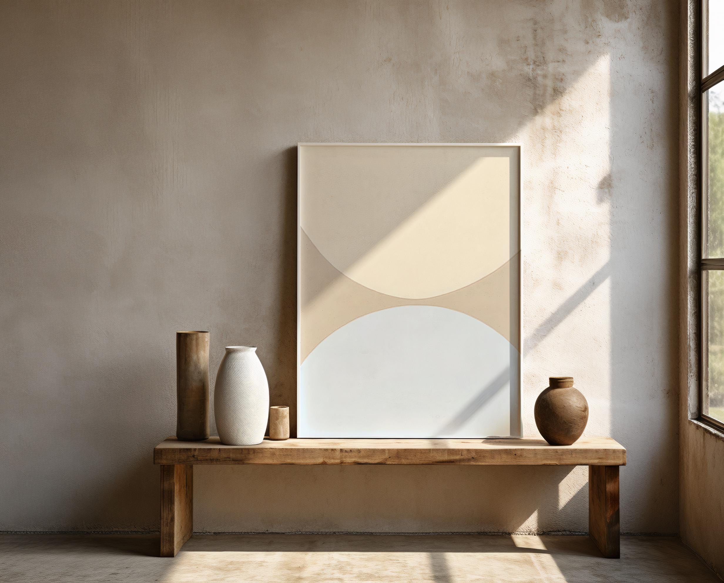 A calm, minimalist abstract composition featuring soft neutral arches in warm cream, sand, and pale blue tones. The gentle curves and airy balance create a serene, elevated aesthetic designed for modern, Japandi, and Scandinavian-inspired interiors.