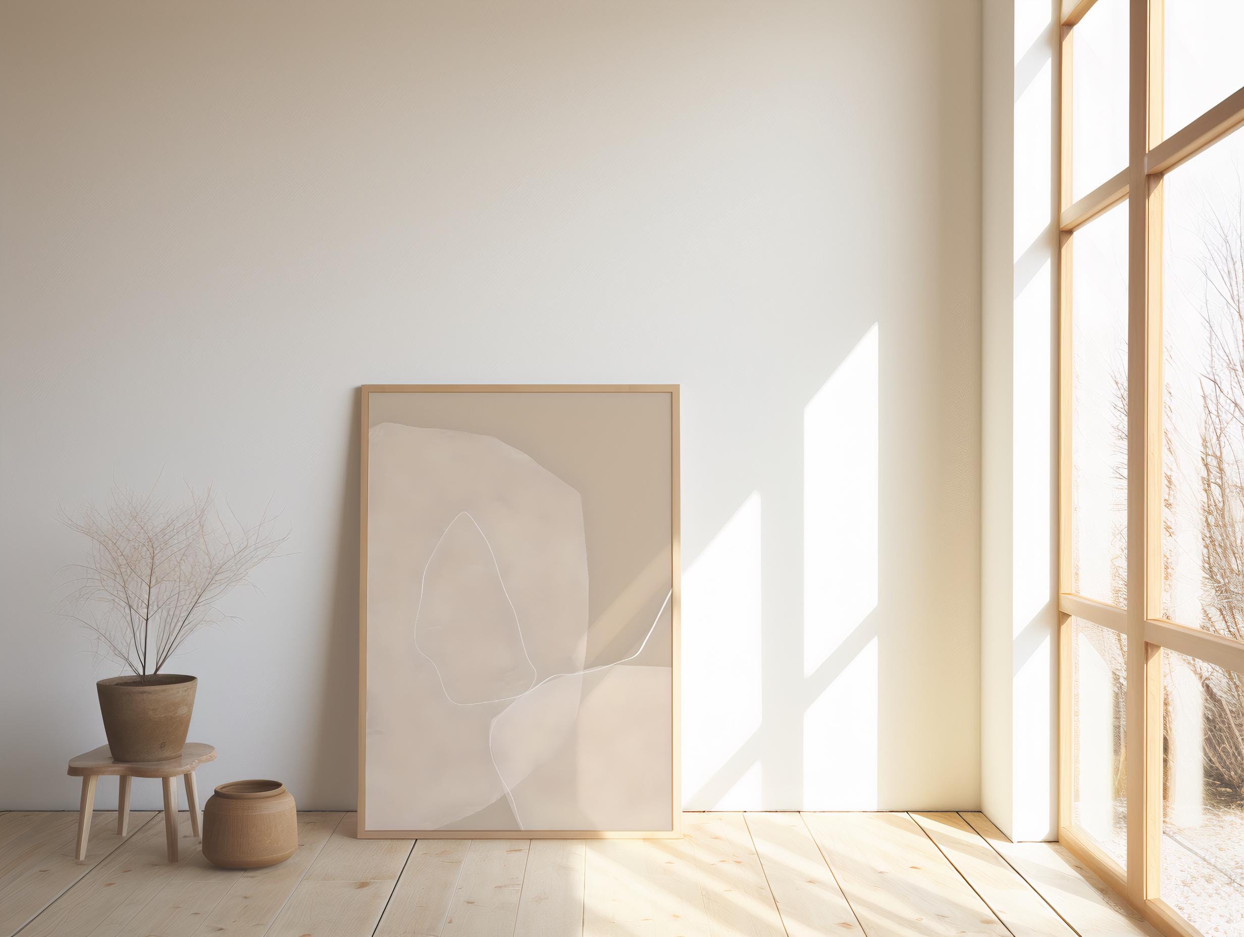 A calm, minimalist abstract artwork in soft beige and warm neutral tones, featuring an organic continuous line design. Refined and understated, this piece is designed to elevate organic modern, minimalist, Scandinavian, Japandi, and contemporary interiors.