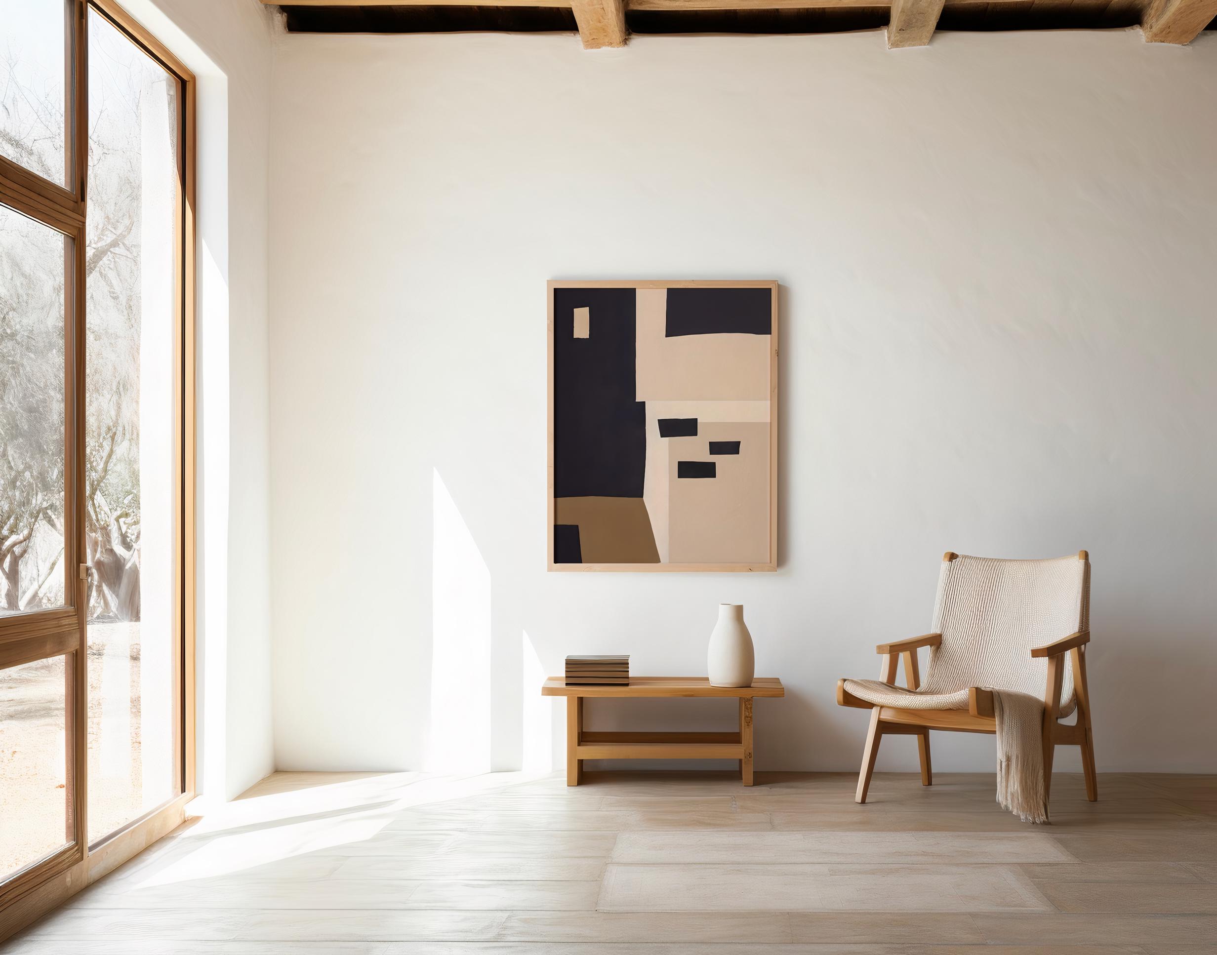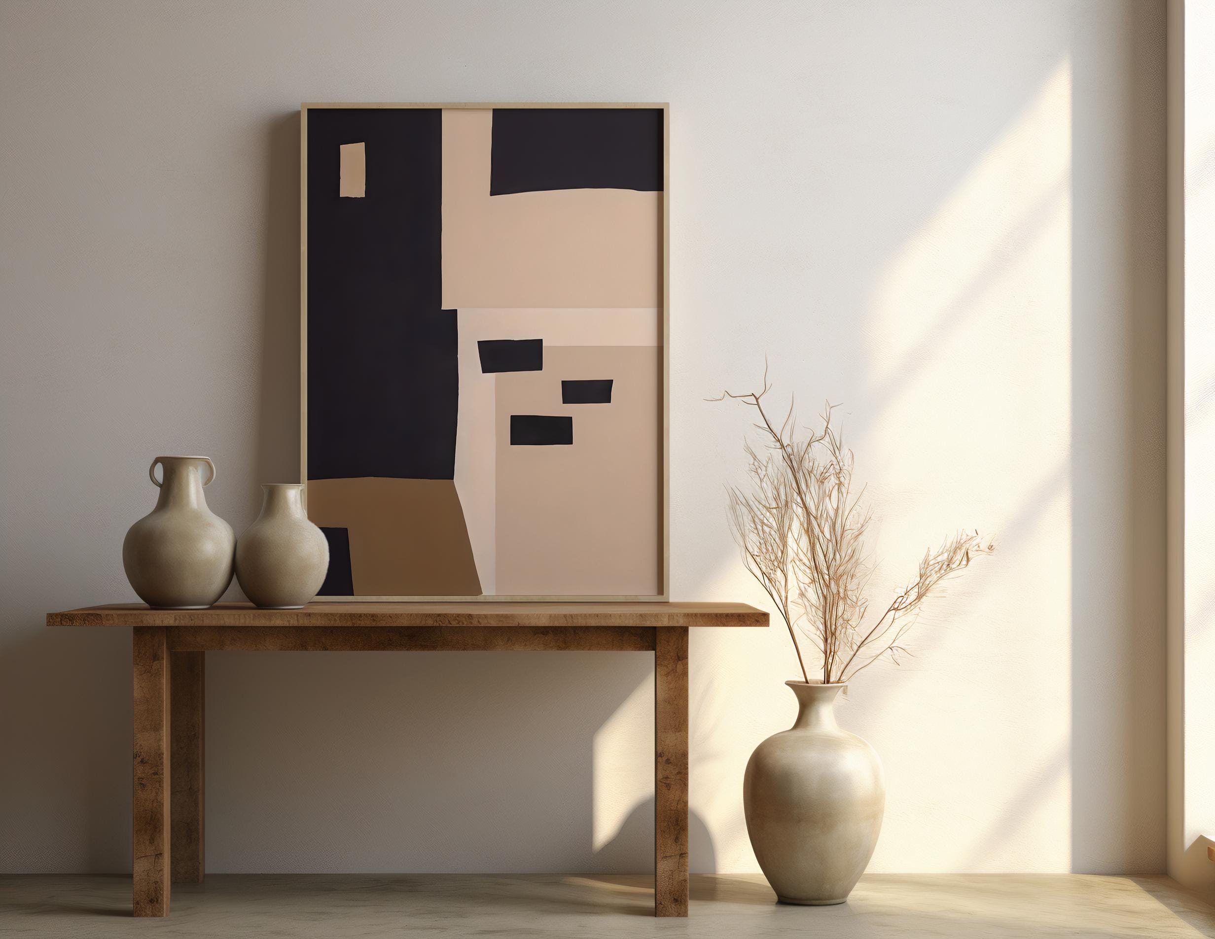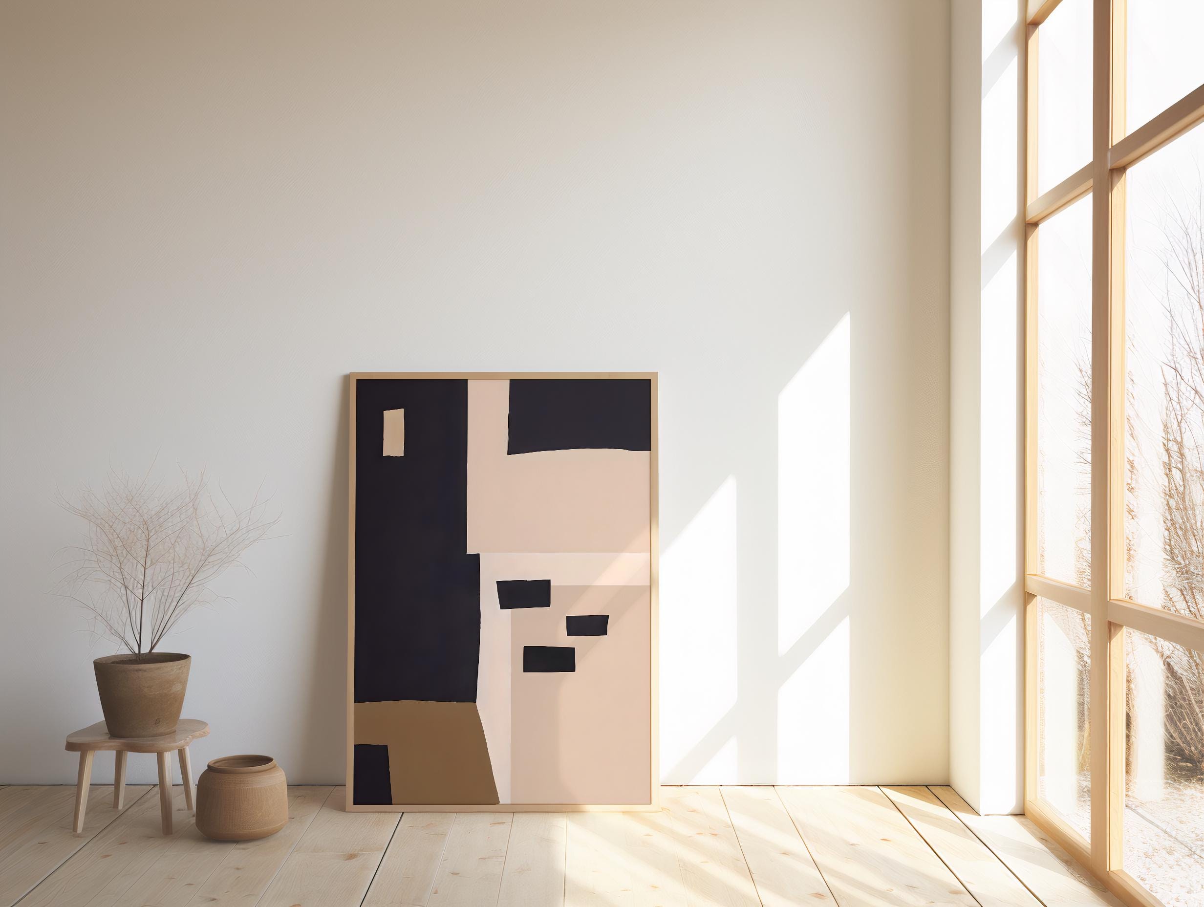 This is a digital download of a modern abstract artwork featuring deep black, warm beige, and soft neutral tones arranged in bold, architectural shapes. Clean contrast and balanced composition give this piece a refined, gallery-style feel designed for elevated, design-forward interiors.