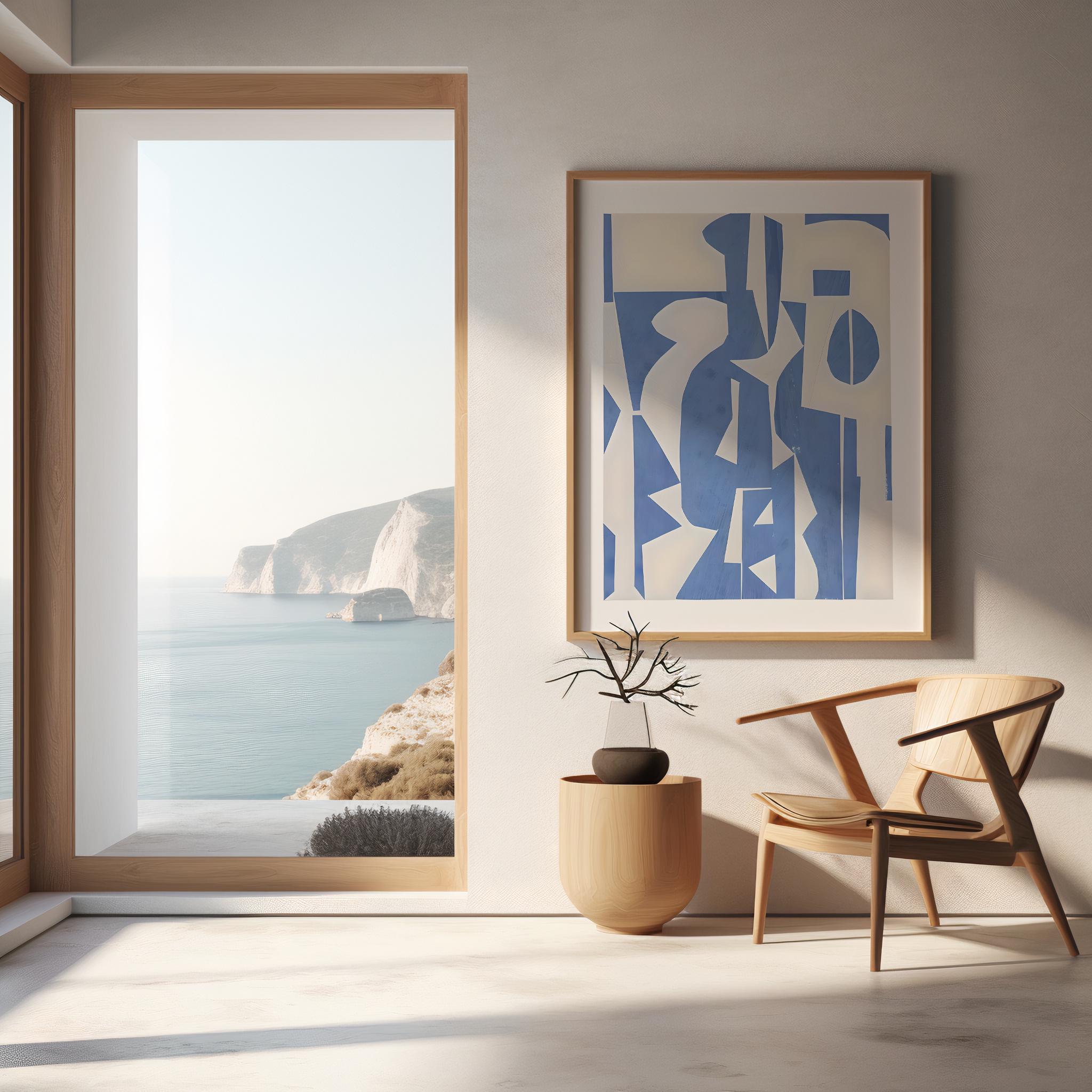 Blue and Cream Abstract Modern Wall Art – Fine Art Poster