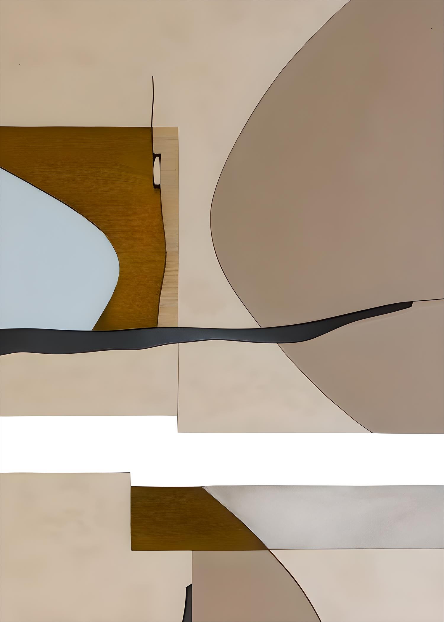 This is a digital download of a contemporary abstract artwork featuring layered organic shapes in warm beige, taupe, soft brown, muted blue, and black accents. Clean lines and sculptural forms create a balanced, architectural composition designed to feel elevated, calm, and design-forward.