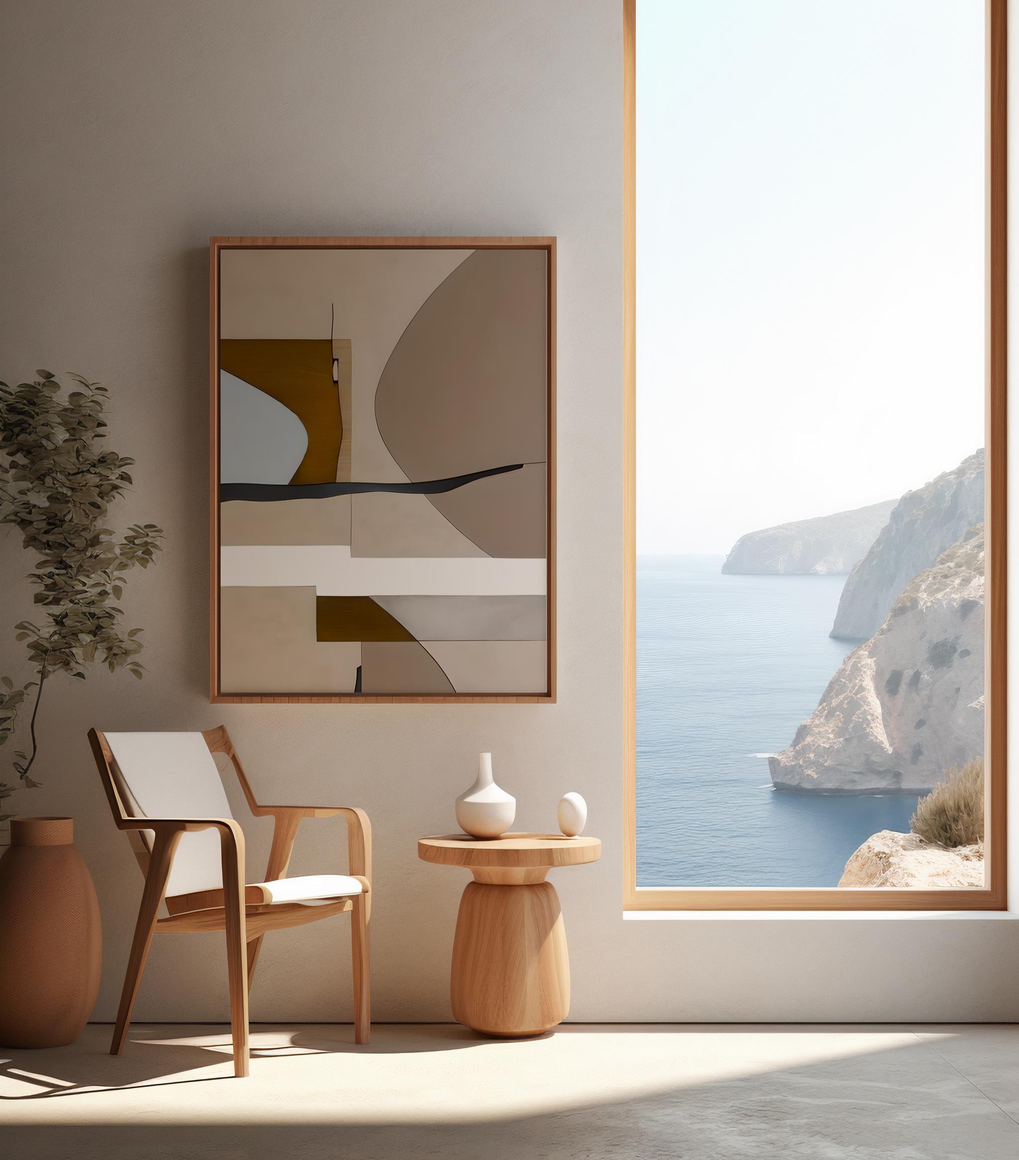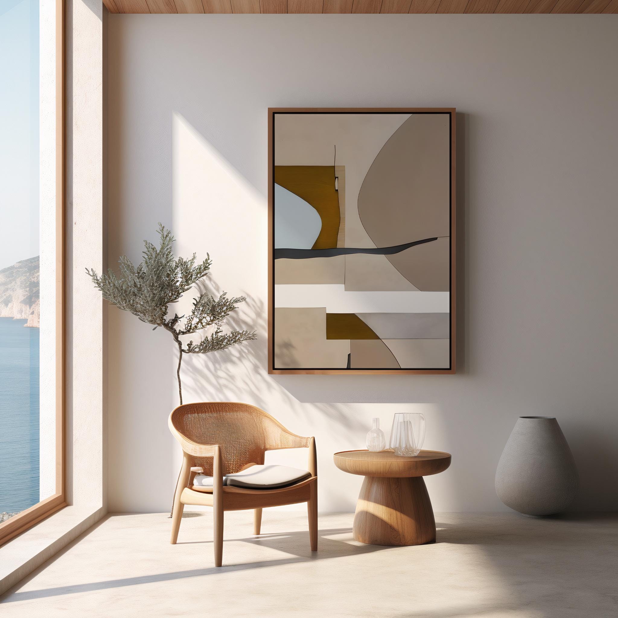 Modern Neutral Abstract Composition Wall Art – Framed Canvas