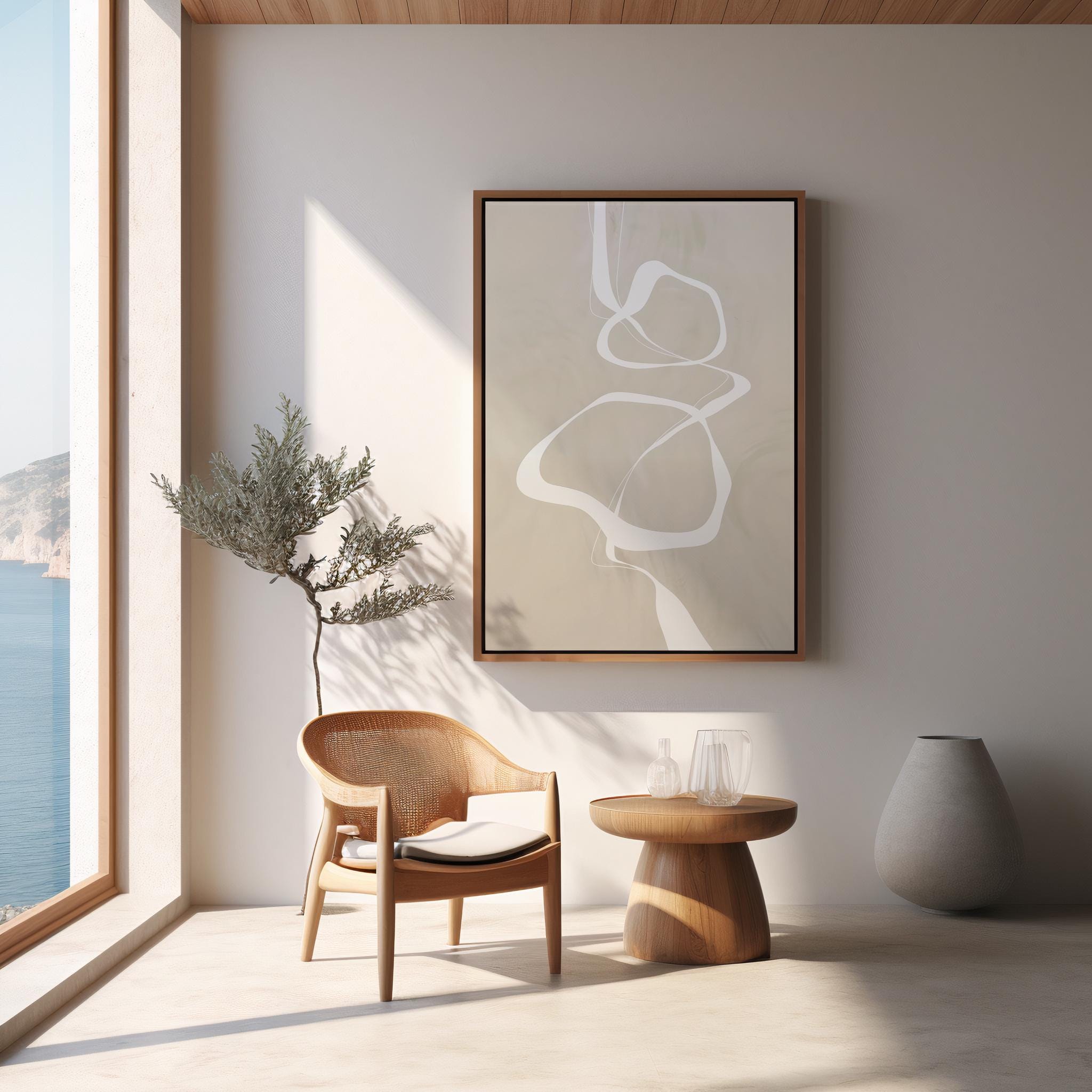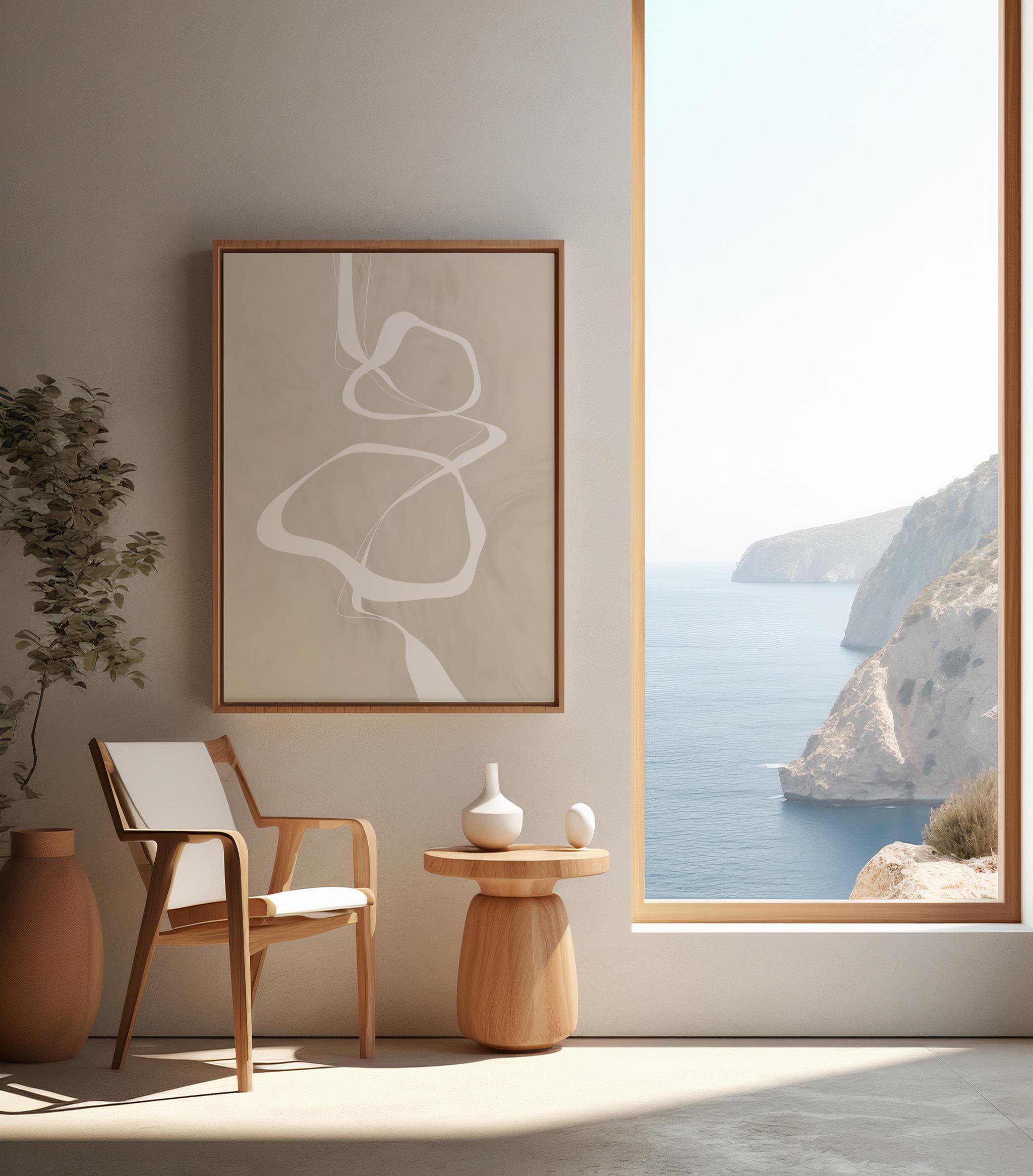 The neutral tones and fluid line work make it an easy fit for organic modern, Japandi, minimalist, and contemporary interiors.