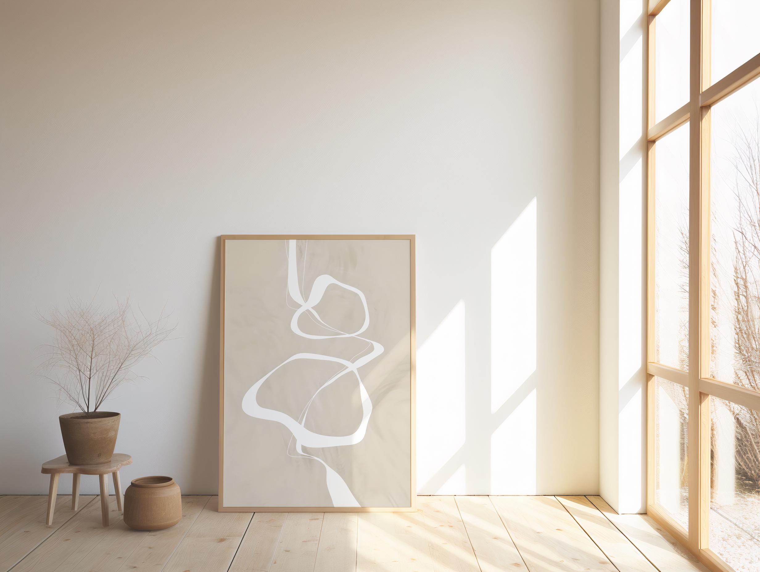 This minimalist fine art poster features flowing abstract lines in soft neutral tones, designed to bring balance and quiet movement to modern interiors. The clean composition works beautifully in calm, curated spaces and pairs effortlessly with organic modern, Japandi, and minimalist decor styles.