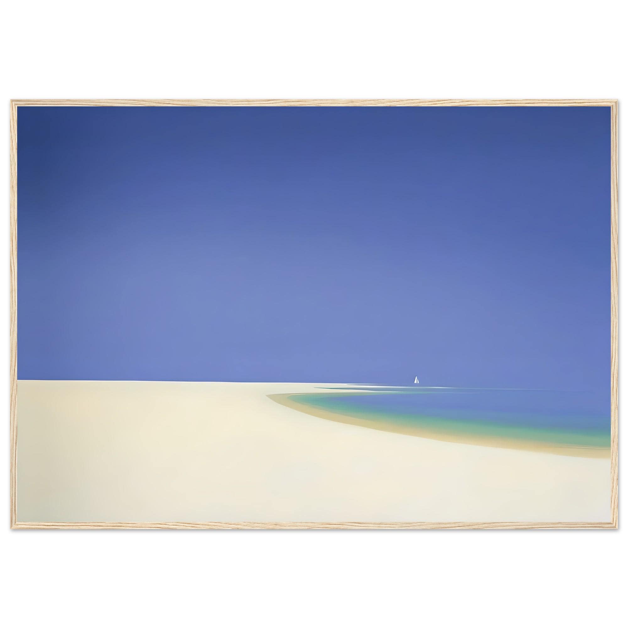 A serene coastal horizon rendered in soft gradients of blue, sand, and seafoam. Minimal composition and expansive negative space create a calm, airy statement that brings a sense of openness and quiet luxury to any room.