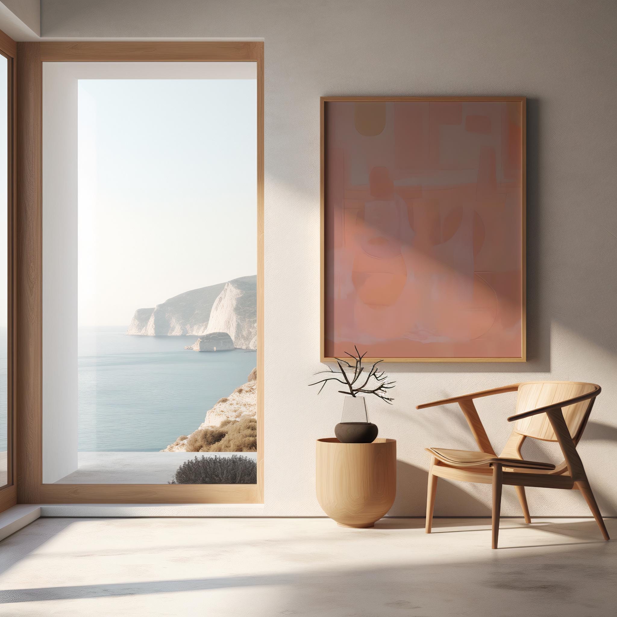 A soft, calming abstract composition featuring layered blush, peach, and muted rose tones. Designed to bring warmth and quiet movement to modern interiors, this piece blends organic shapes with a minimal aesthetic for an effortless, elevated look.