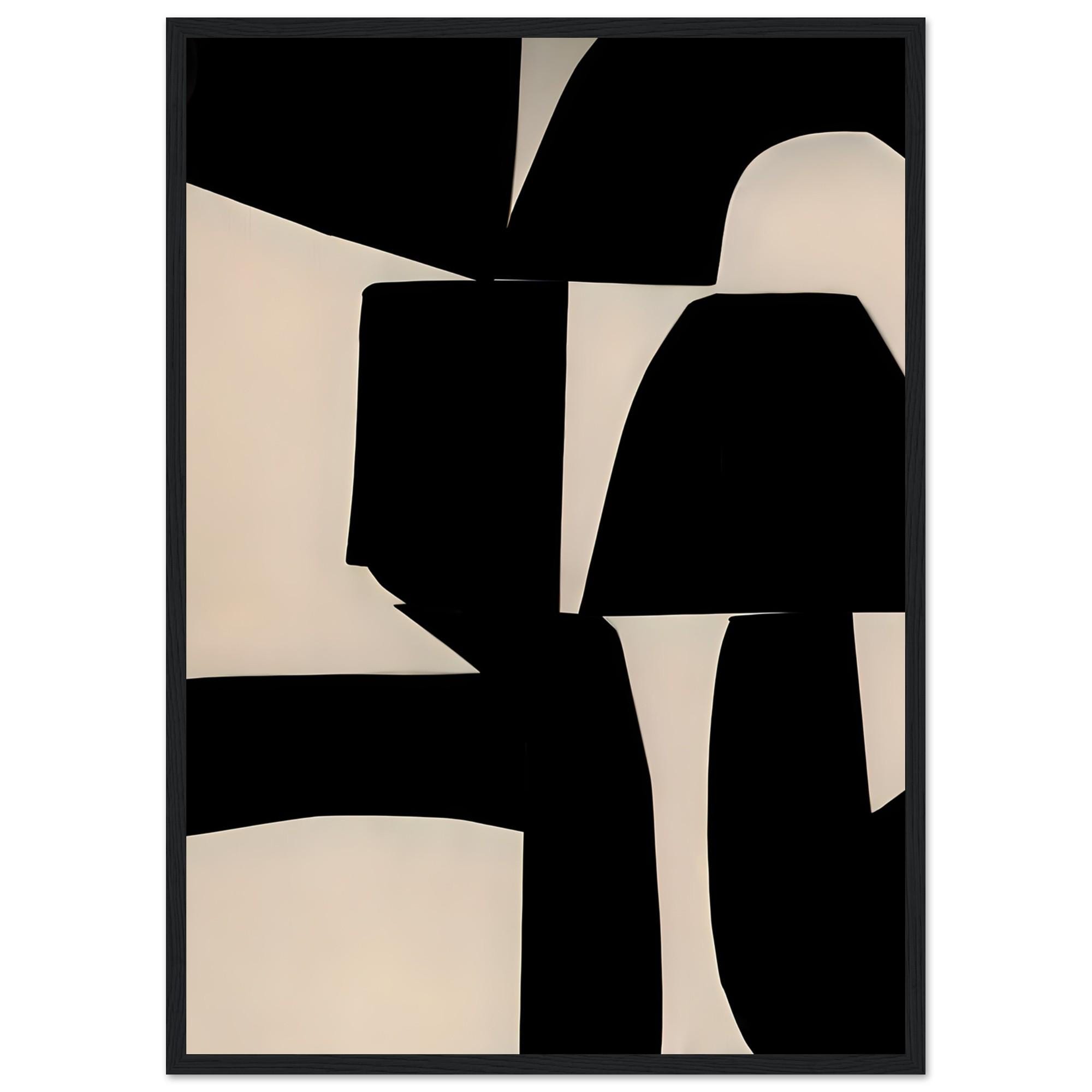 A striking abstract composition defined by deep black forms and warm ivory shapes in a bold, architectural layout. Designed to feel intentional and modern, this piece adds contrast, structure, and visual weight to refined interiors.