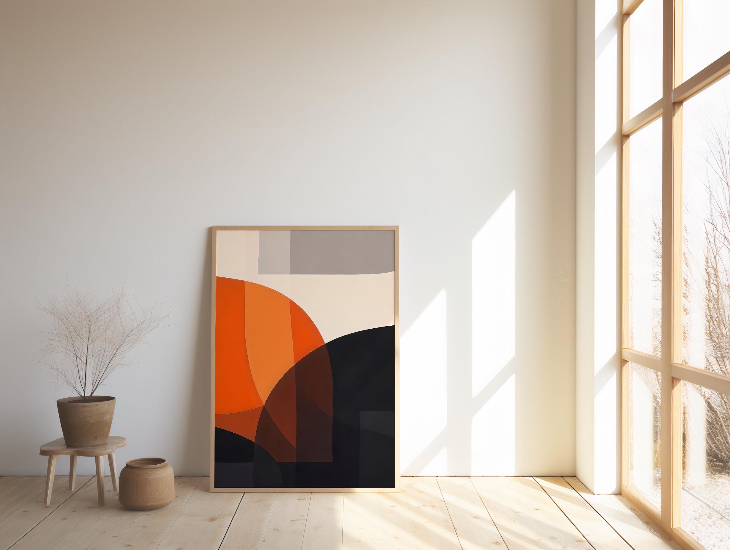 Burnt Orange and Black Geometric Abstract Wall Art – Fine Art Poster