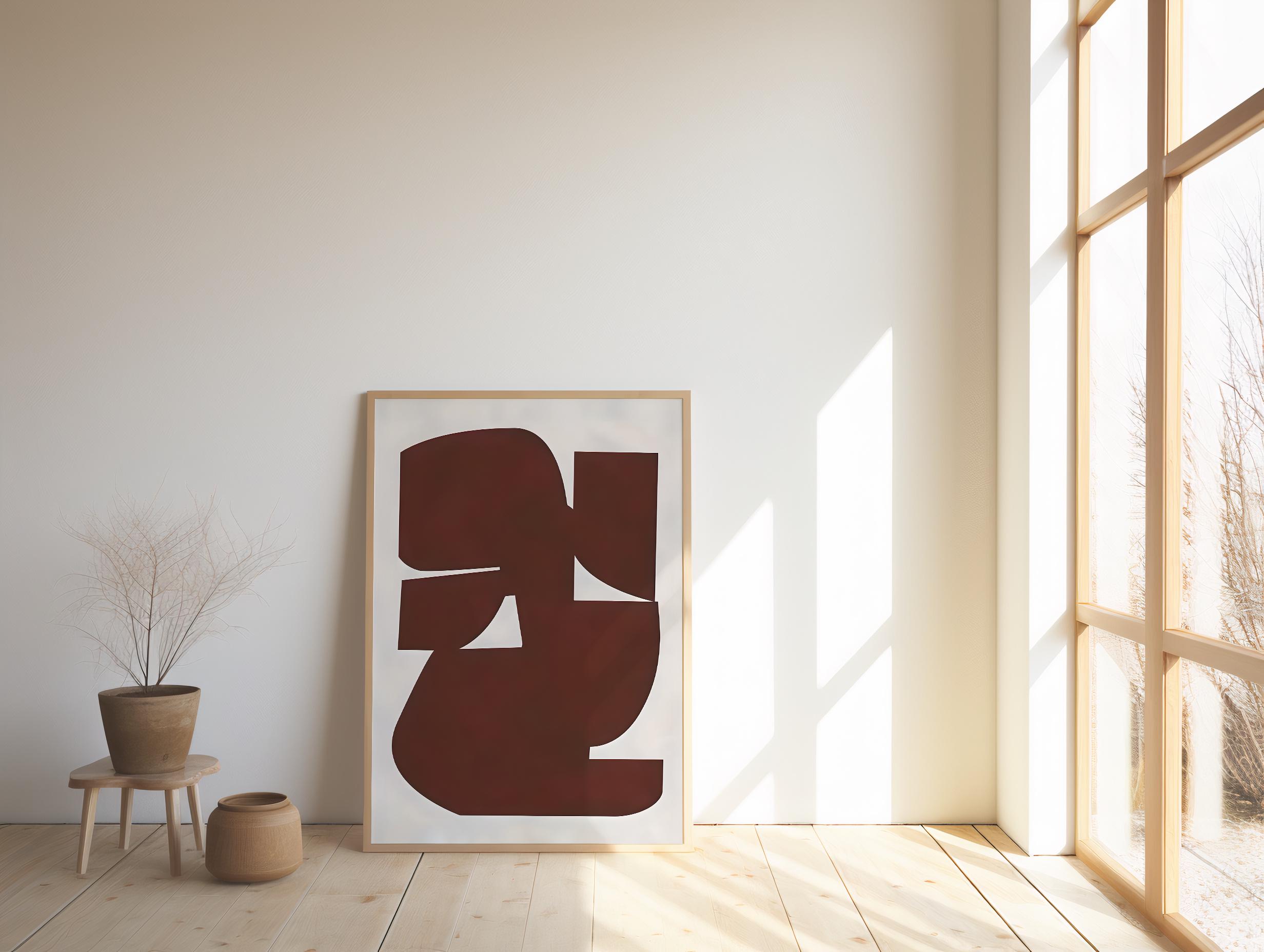 A bold, sculptural abstract design in rich chocolate brown tones, framed and ready to elevate your space. Organic curves and modern geometry create a grounded yet refined statement that pairs effortlessly with organic modern, Japandi, and minimalist interiors.