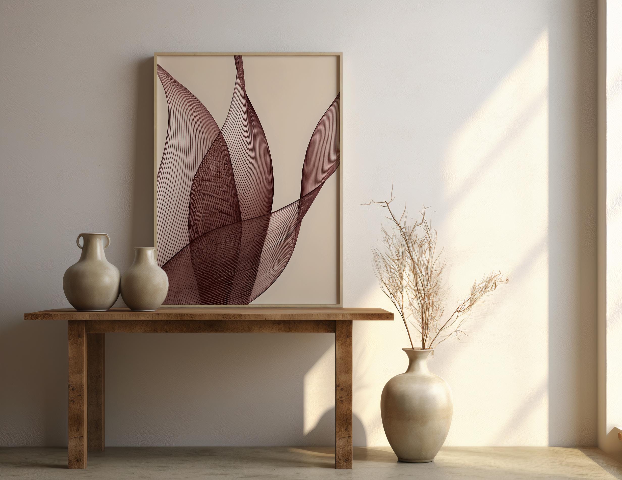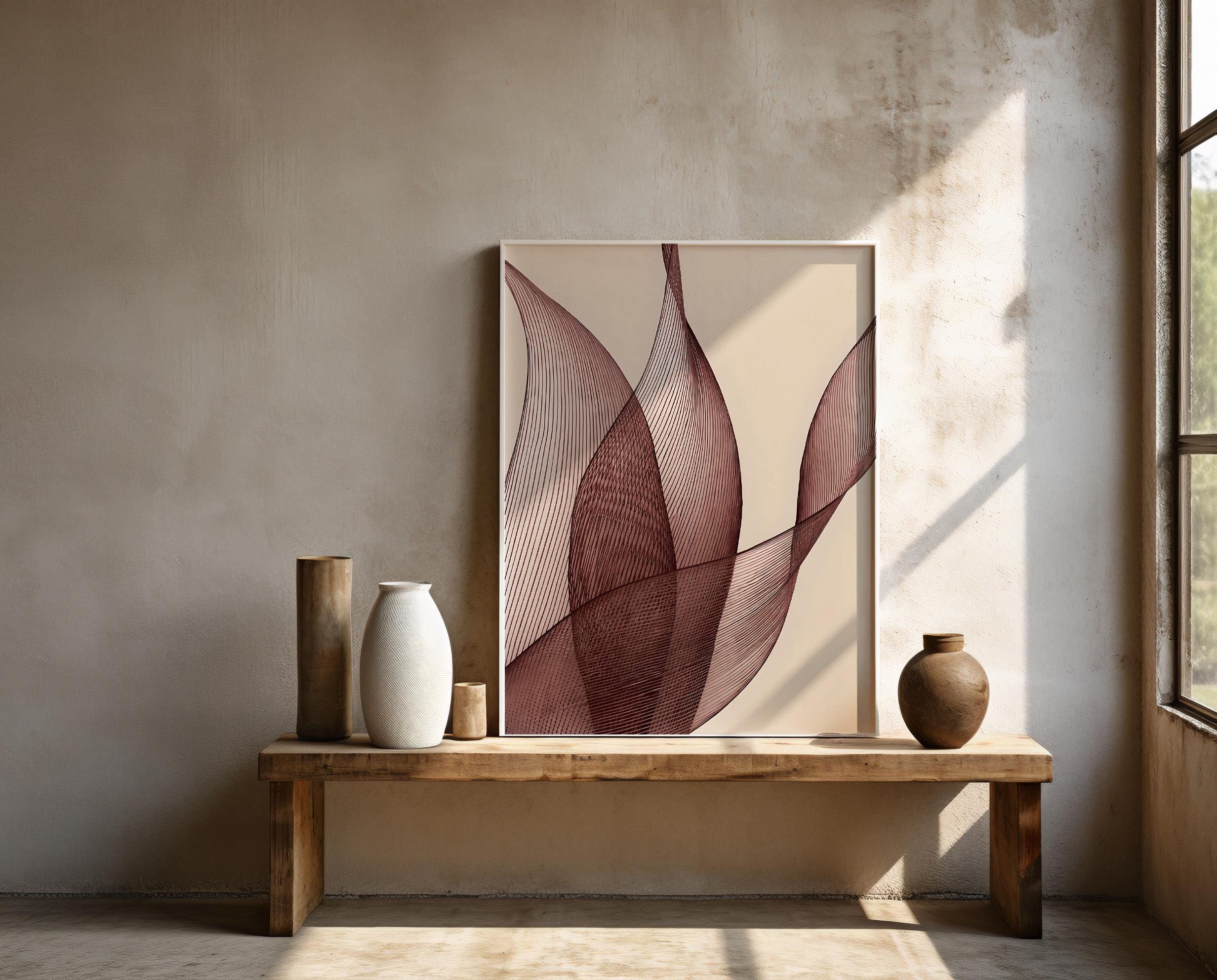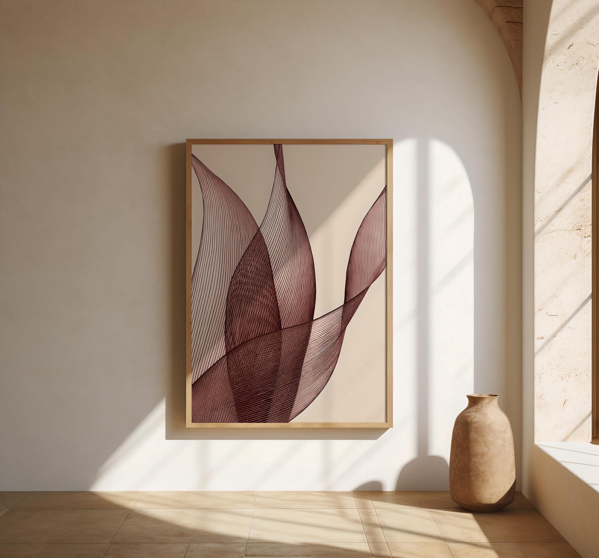 A soft, flowing abstract composition in warm smoky browns and taupe tones, designed to bring calm movement and organic elegance into your space. Layered linework creates depth and texture while keeping a minimalist, modern feel — perfect for neutral interiors, Japandi homes, and contemporary spaces.