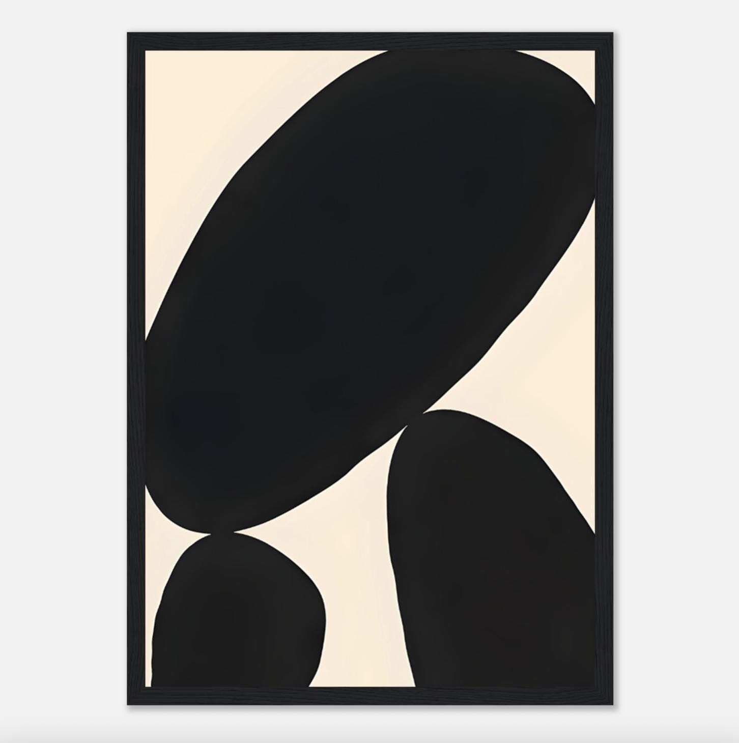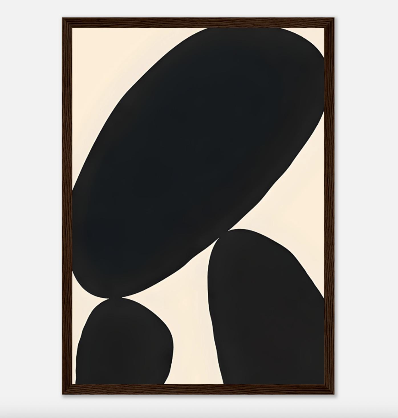 A refined abstract composition featuring bold black organic shapes against a soft warm-neutral background. Minimal yet powerful, this framed artwork brings depth, balance, and quiet luxury to modern interiors. Designed for collectors and design-forward spaces where quality and presence matter.