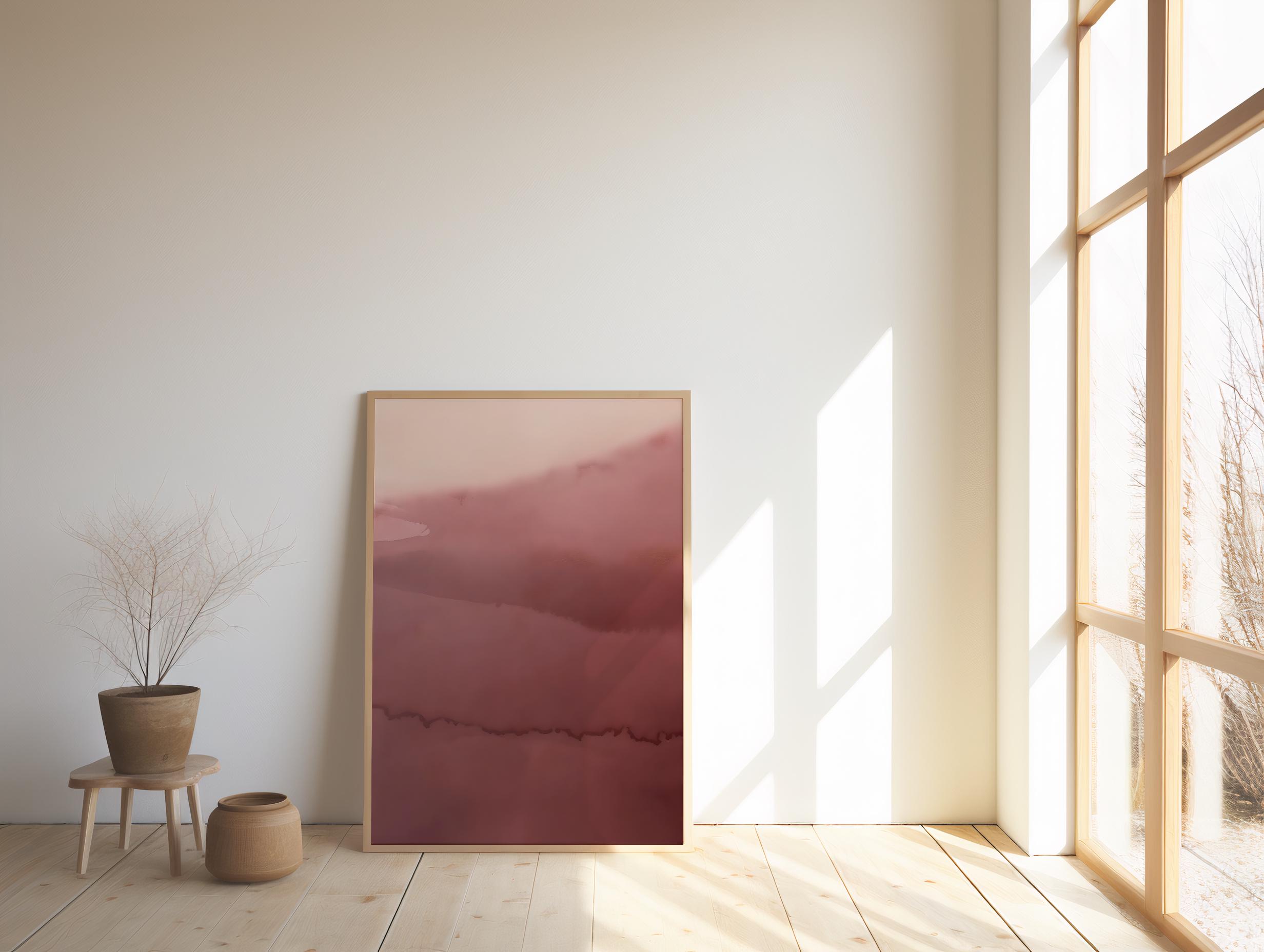 A soft, atmospheric abstract composition layered in warm blush, rose, and clay tones. This piece feels calm, modern, and grounded—designed to elevate neutral interiors without overpowering the space. Perfect for collectors who want understated color and quiet impact.