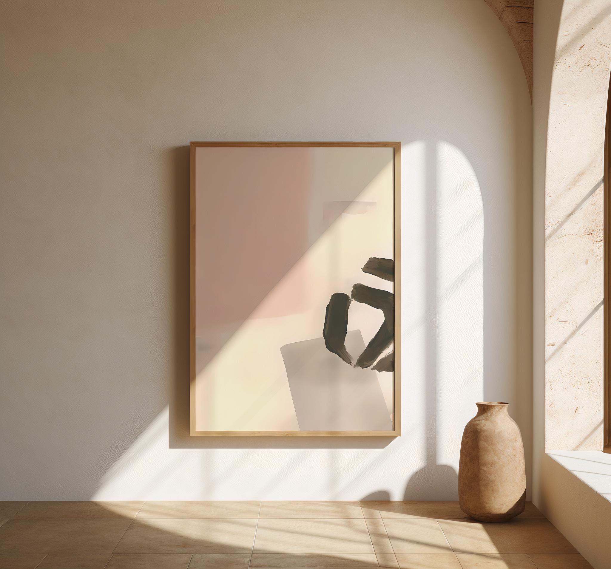 A soft, modern abstract composition featuring earthy brushstrokes layered over warm neutral tones. Minimal and airy with an organic feel, this piece is designed to blend seamlessly into calm, refined interiors without overpowering the space.