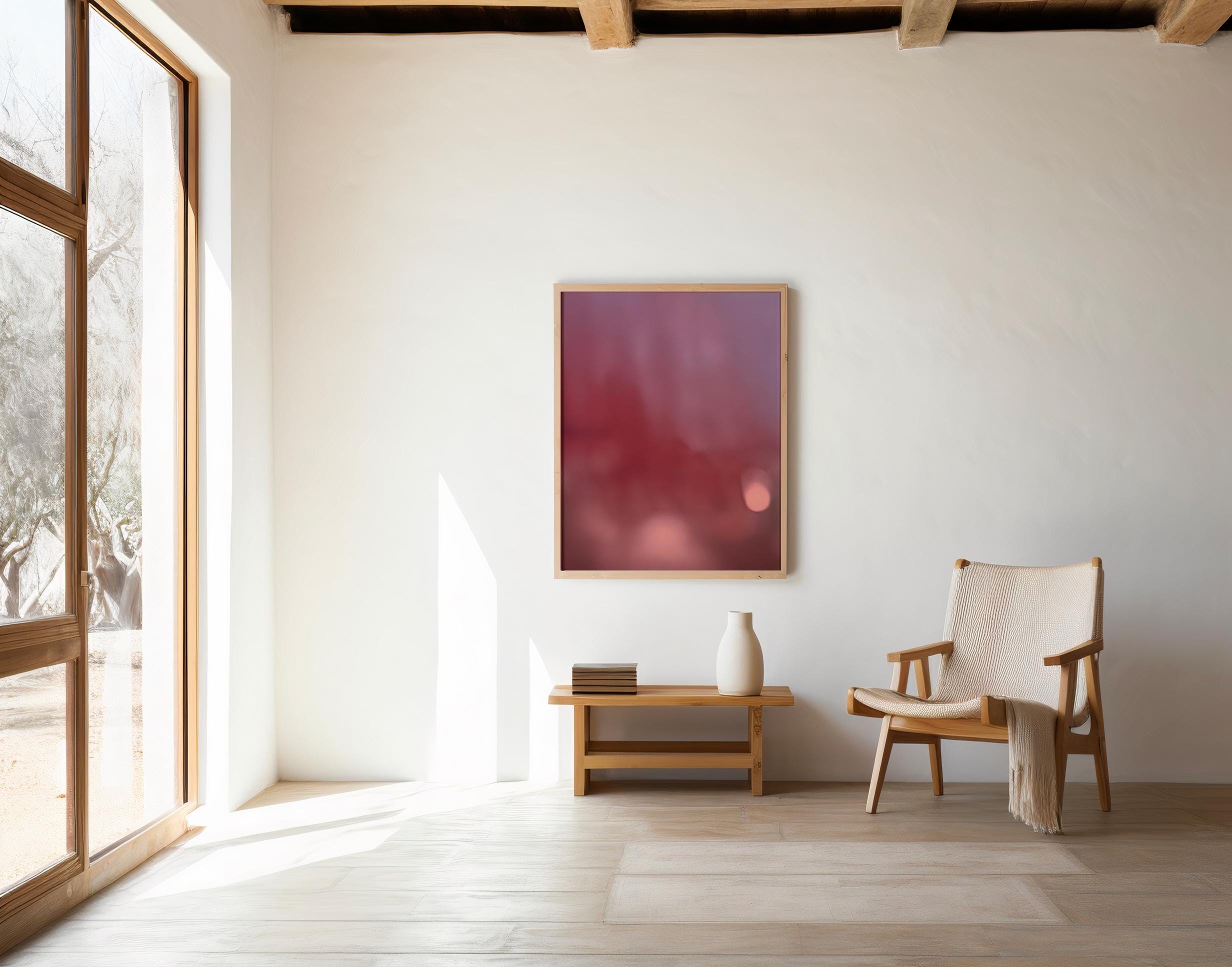 A soft, atmospheric abstract piece in muted berry, mauve, and blush tones—professionally framed and ready to hang. Designed to bring warmth and subtle depth to modern, minimalist, and organic interiors.