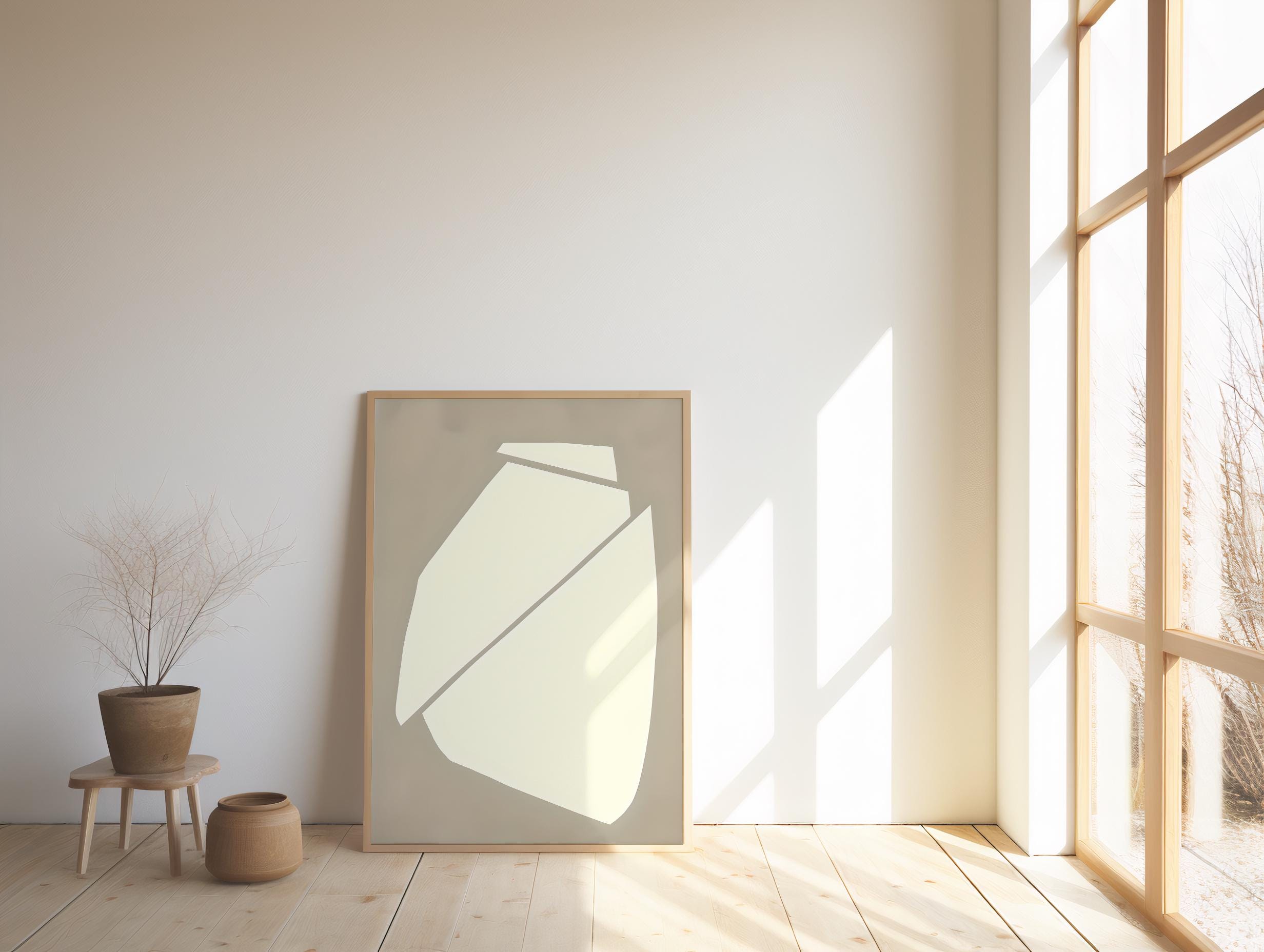 A calm, minimalist abstract composition in soft neutral and warm beige tones, professionally framed and ready to hang. Designed to bring balance, warmth, and quiet sophistication to modern, organic, and design-forward interiors.