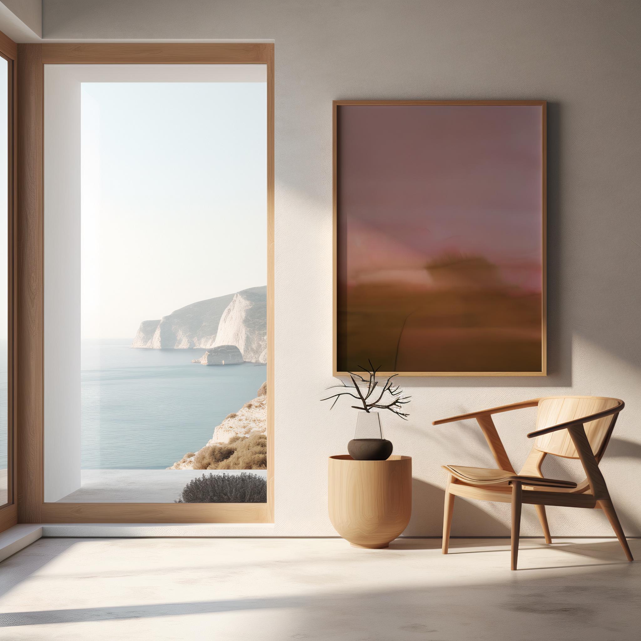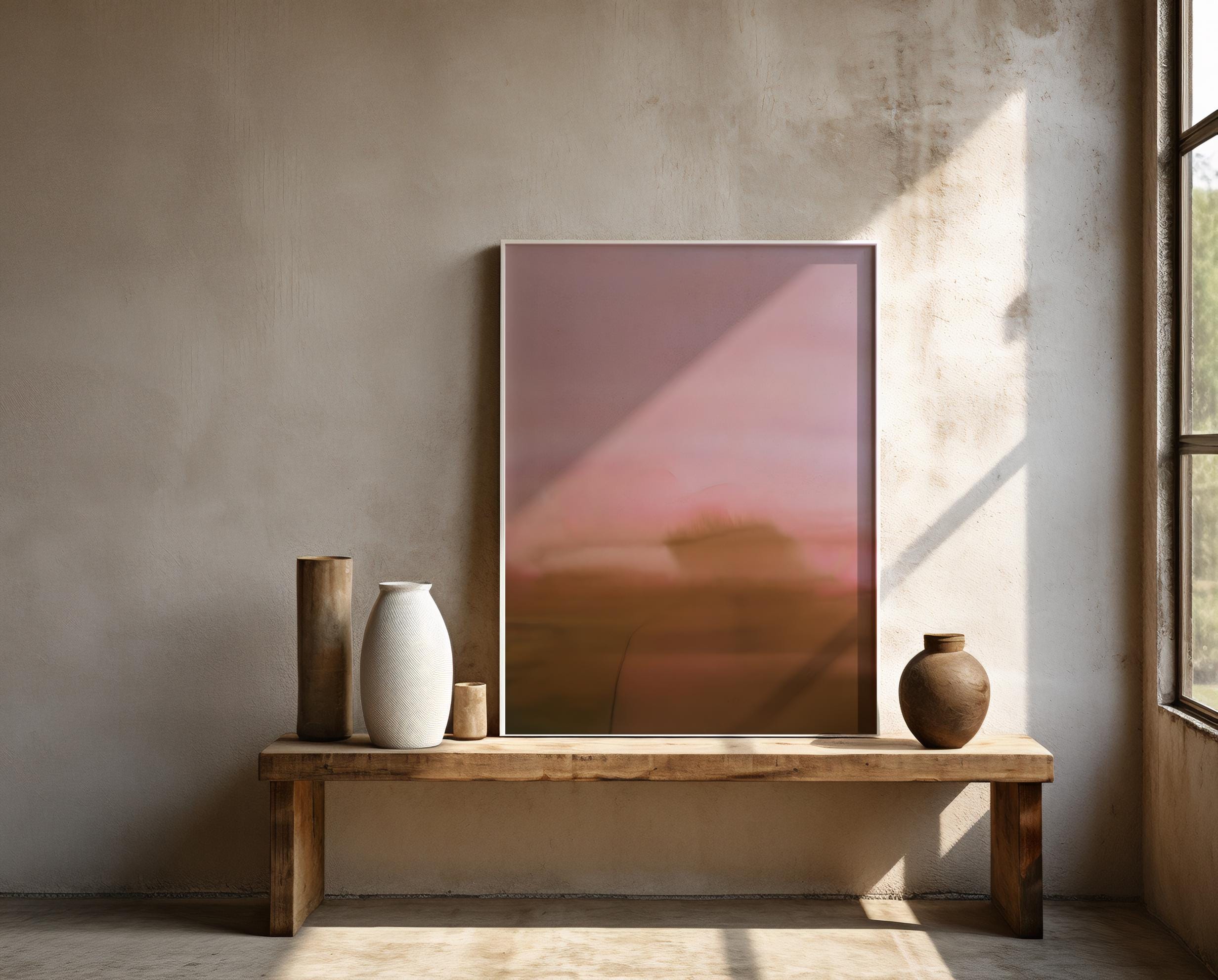 A soft, atmospheric abstract landscape in warm blush, clay, and earthy brown tones—professionally framed and ready to hang. Designed to bring warmth, depth, and calm to modern, organic, and design-forward interiors.