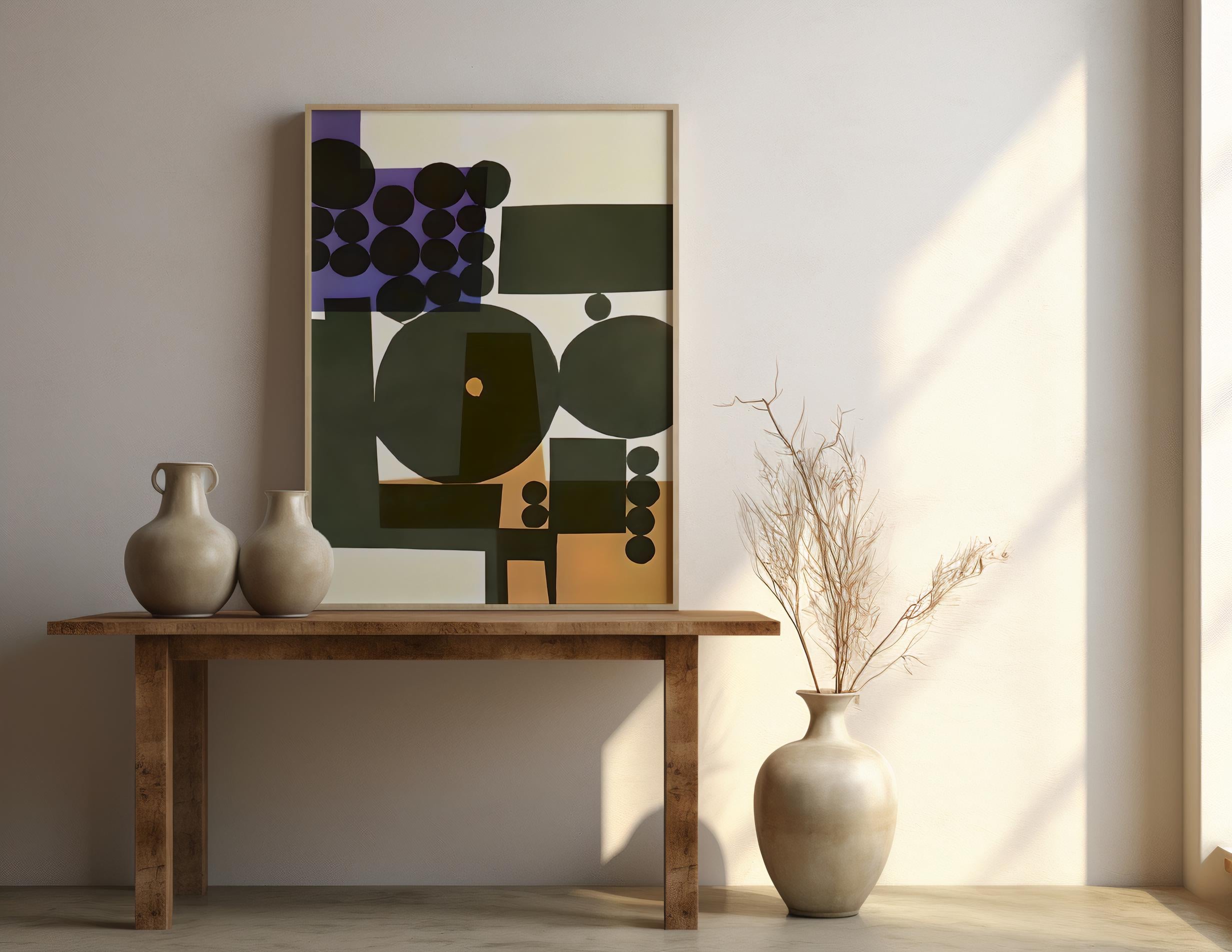 The balance of structured shapes and soft tonal transitions gives this piece a refined gallery presence. Ideal for contemporary interiors, organic modern homes, creative studios, and statement living spaces.