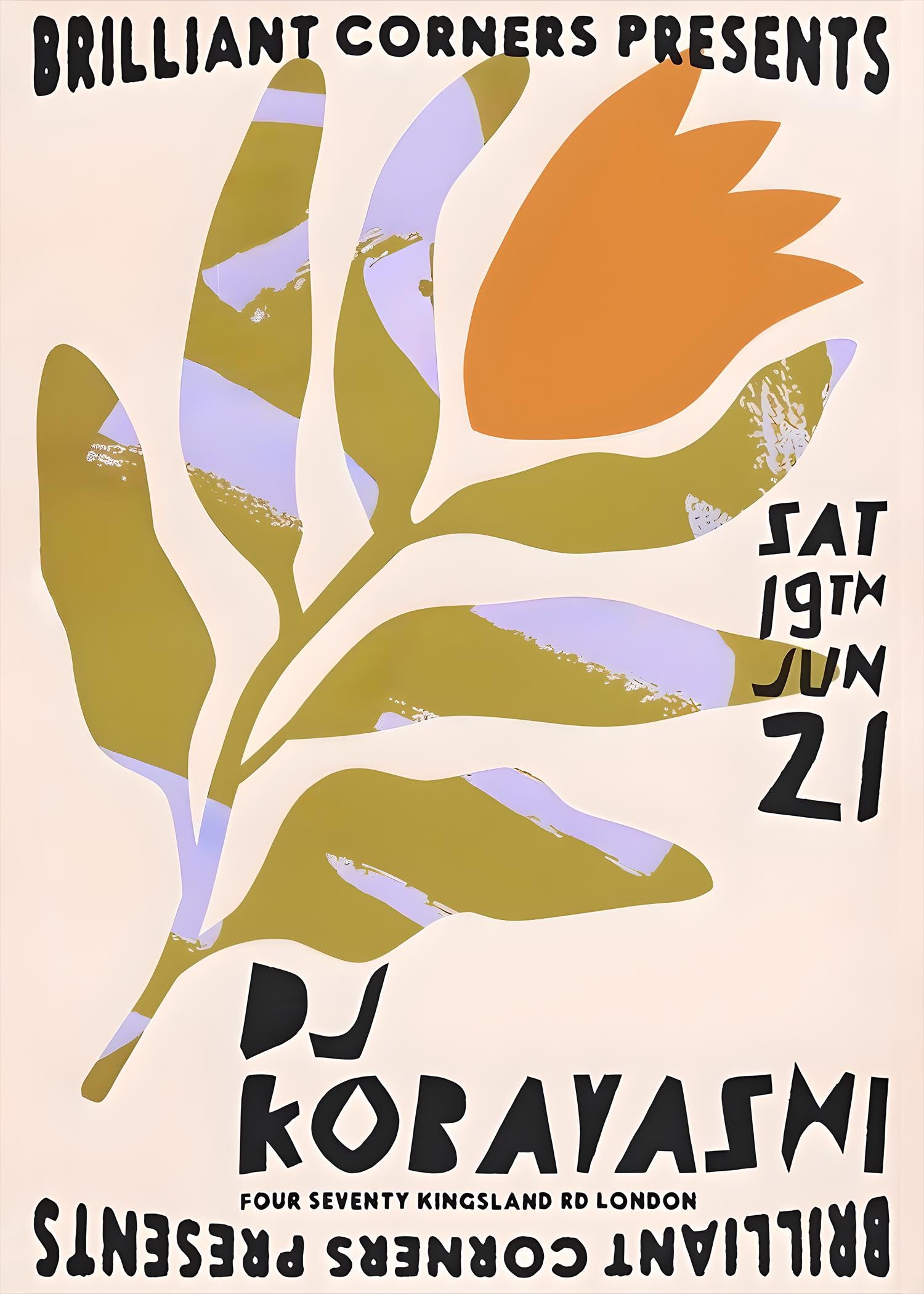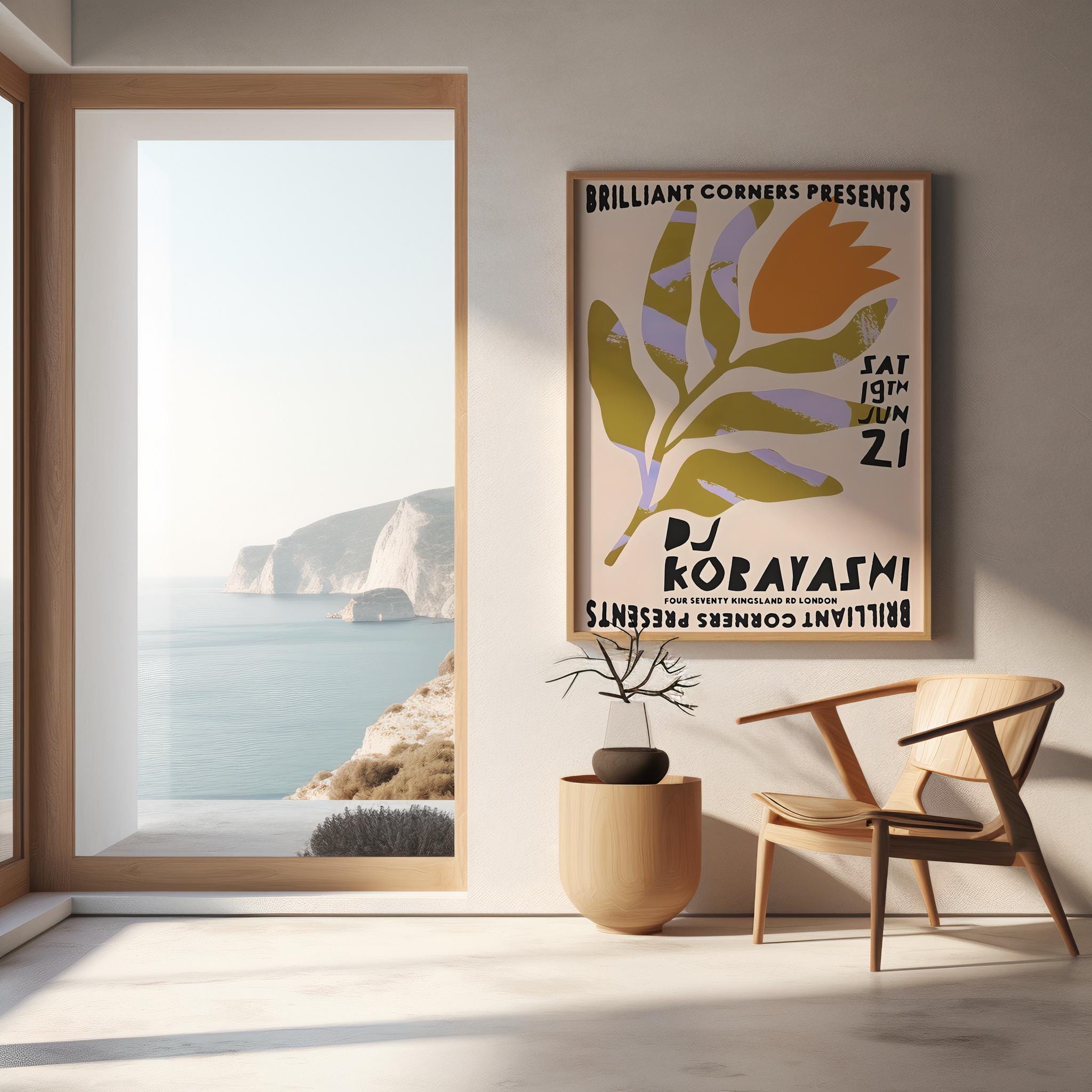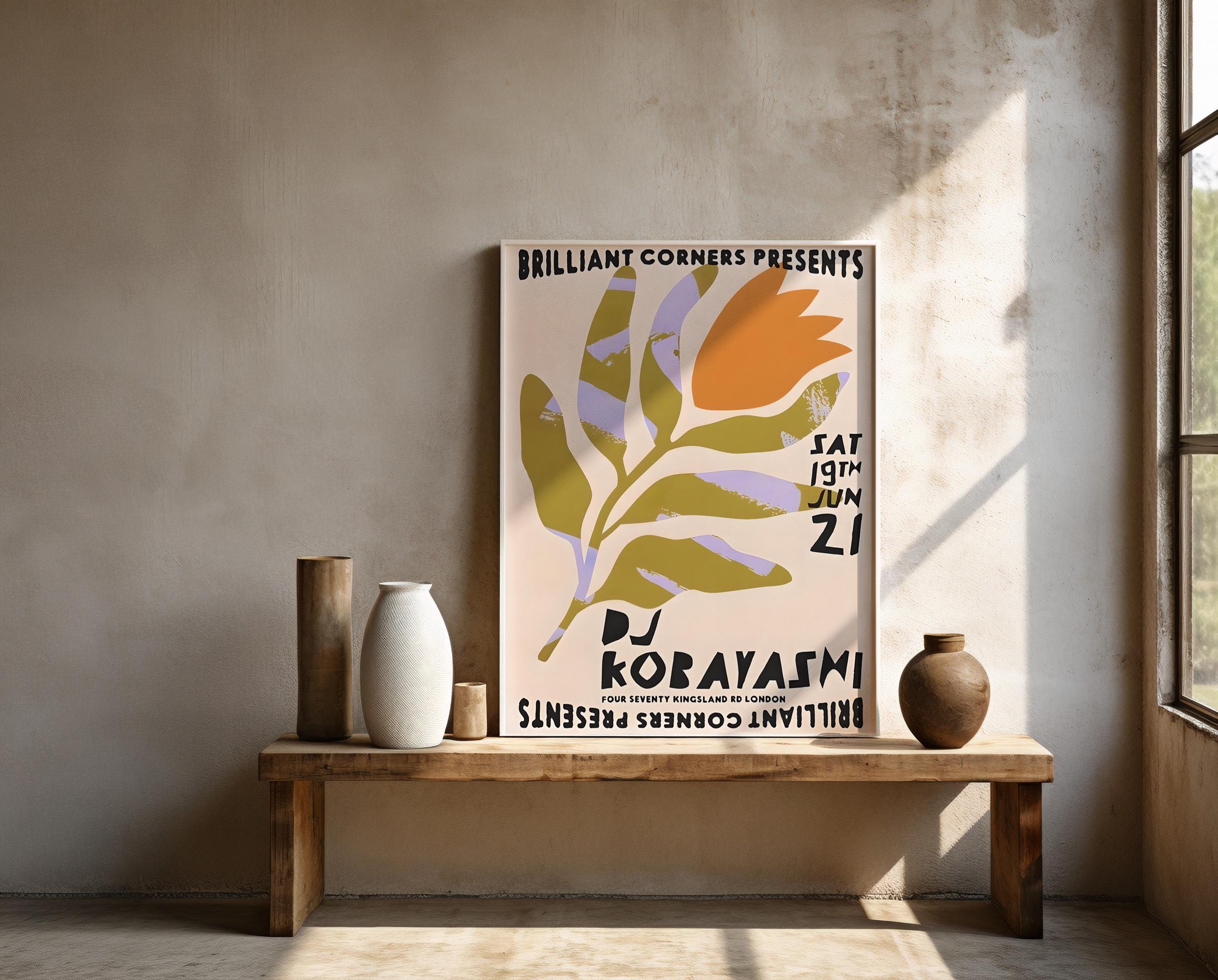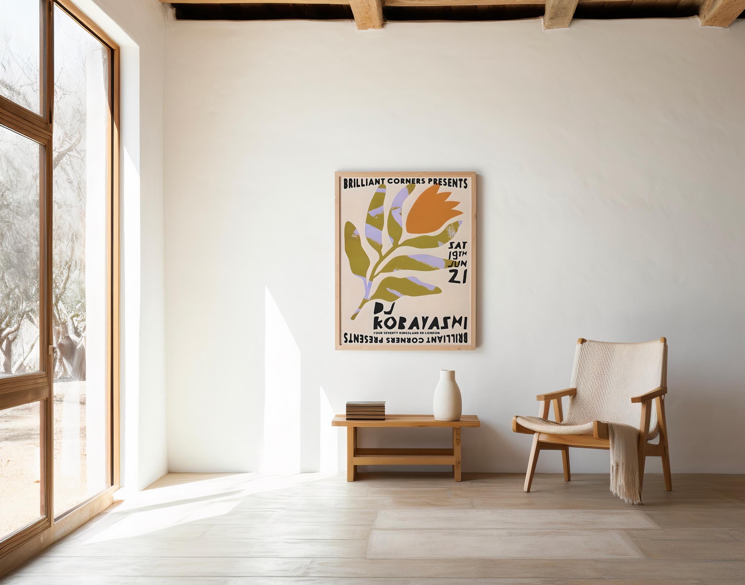 A bold retro-inspired DJ poster featuring organic shapes in olive green, soft lavender, and warm orange with playful typography. Designed with a modern festival feel, this graphic artwork works perfectly as wall decor or printable event-style art for music lovers and creative spaces.