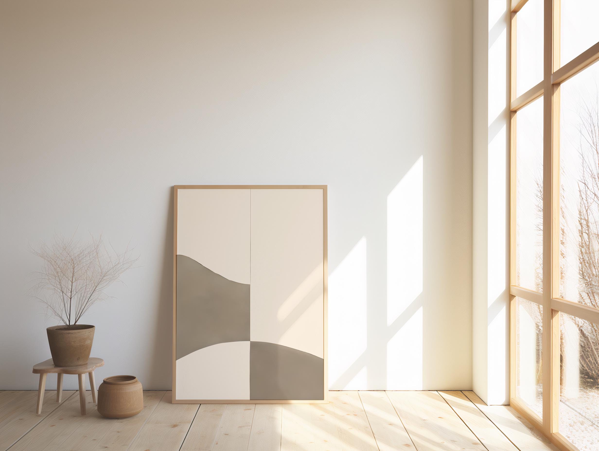 A minimalist abstract featuring flowing taupe forms on a warm cream background. Calm, balanced, and modern — designed for neutral interiors, organic modern homes, and serene gallery walls.
