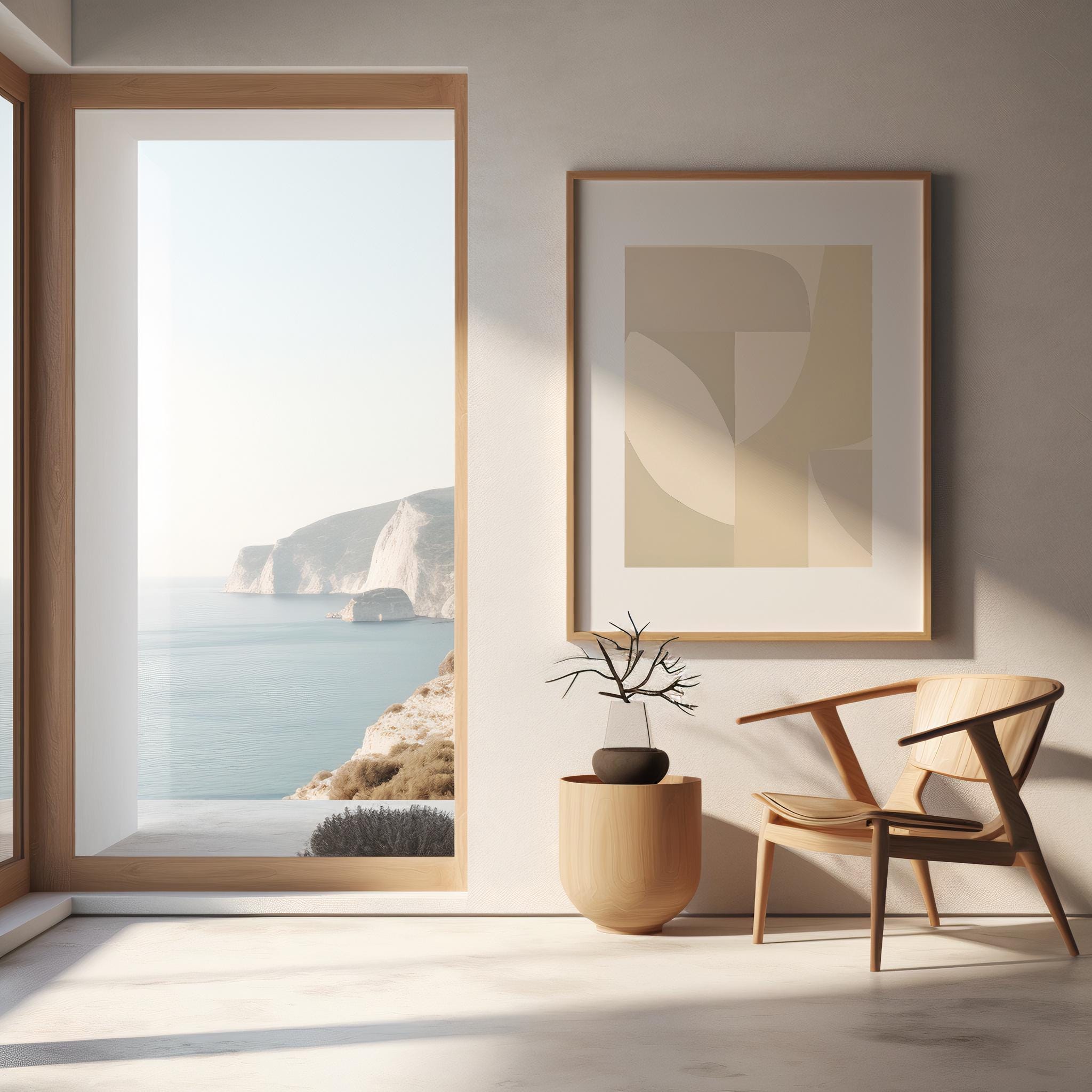 Instantly elevate your space with this modern neutral abstract artwork featuring soft geometric shapes in warm beige, cream, and earthy tones. Designed to complement Japandi, organic modern, and minimalist interiors — perfect for creating a calm, elevated atmosphere in any room.