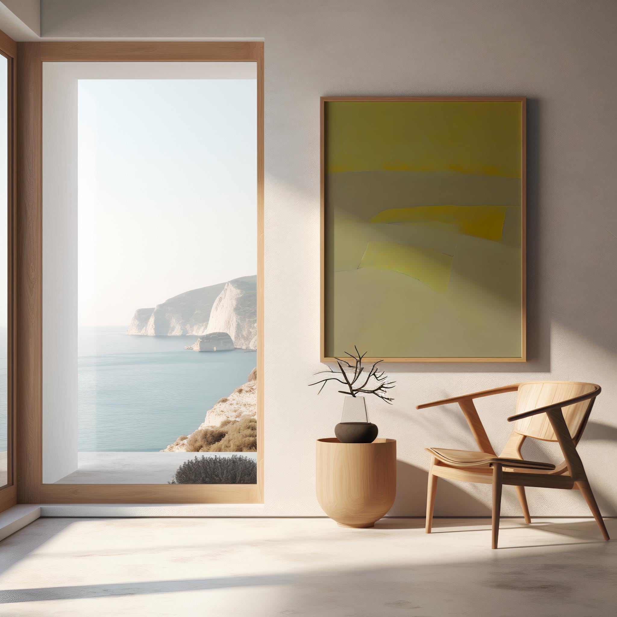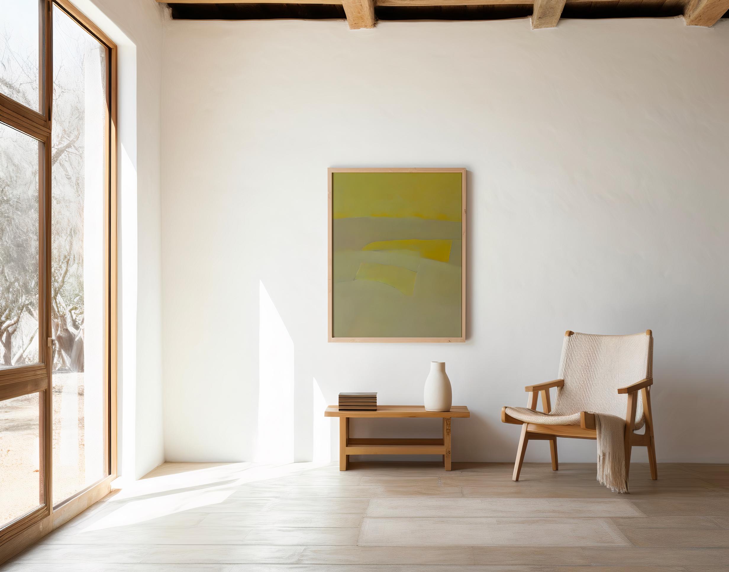 Elevate your space with this layered olive yellow abstract artwork, featuring muted green undertones and soft blended transitions. The atmospheric color blocking adds warmth and depth while maintaining a clean, modern presence — ideal for organic modern and Japandi-inspired interiors.