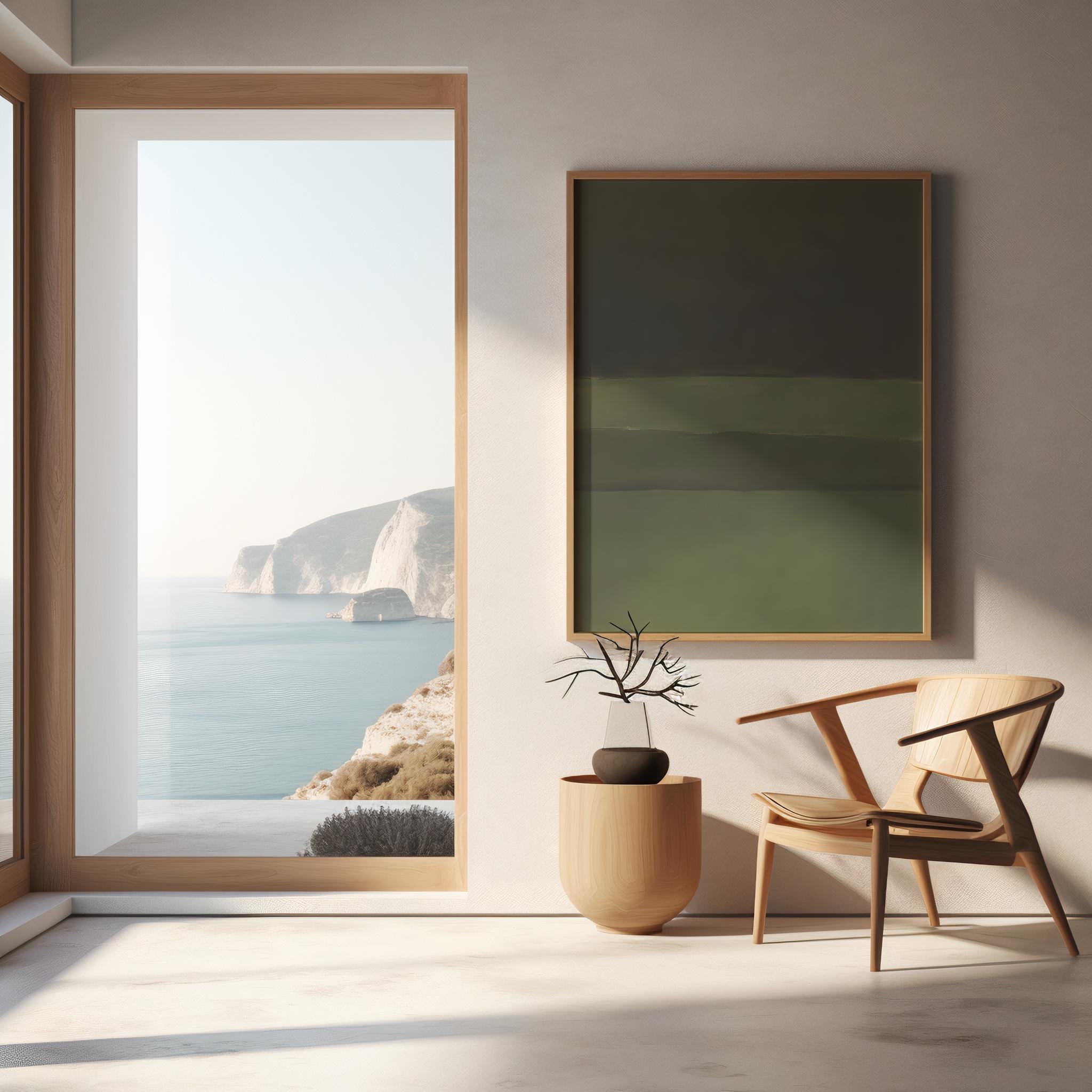 Moody Olive Green Abstract Print | Minimal Earth Tone Wall Art | Fine Art Poster