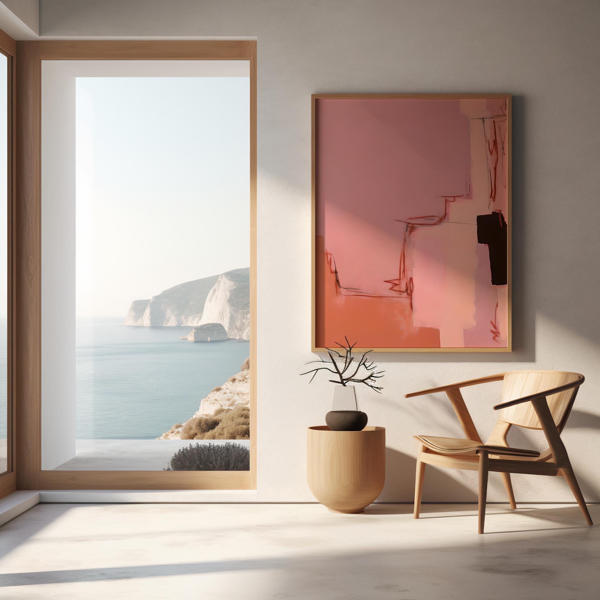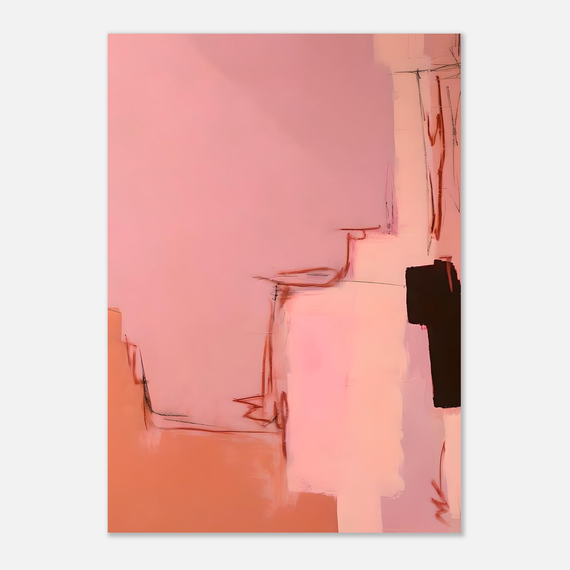 A soft yet expressive abstract composition featuring layered blush pink, peach, and warm terracotta tones with subtle gestural lines and modern color blocking. The muted warmth creates a calm, elevated atmosphere while the darker accent introduces contrast and depth.