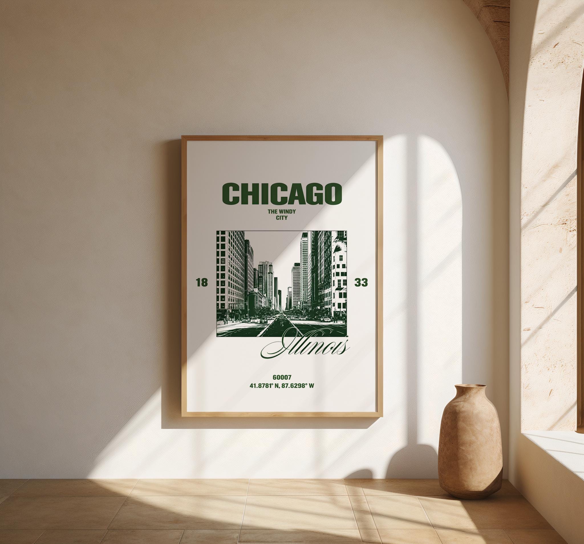 Chicago Cityscape Poster | Green Architecture Travel Print