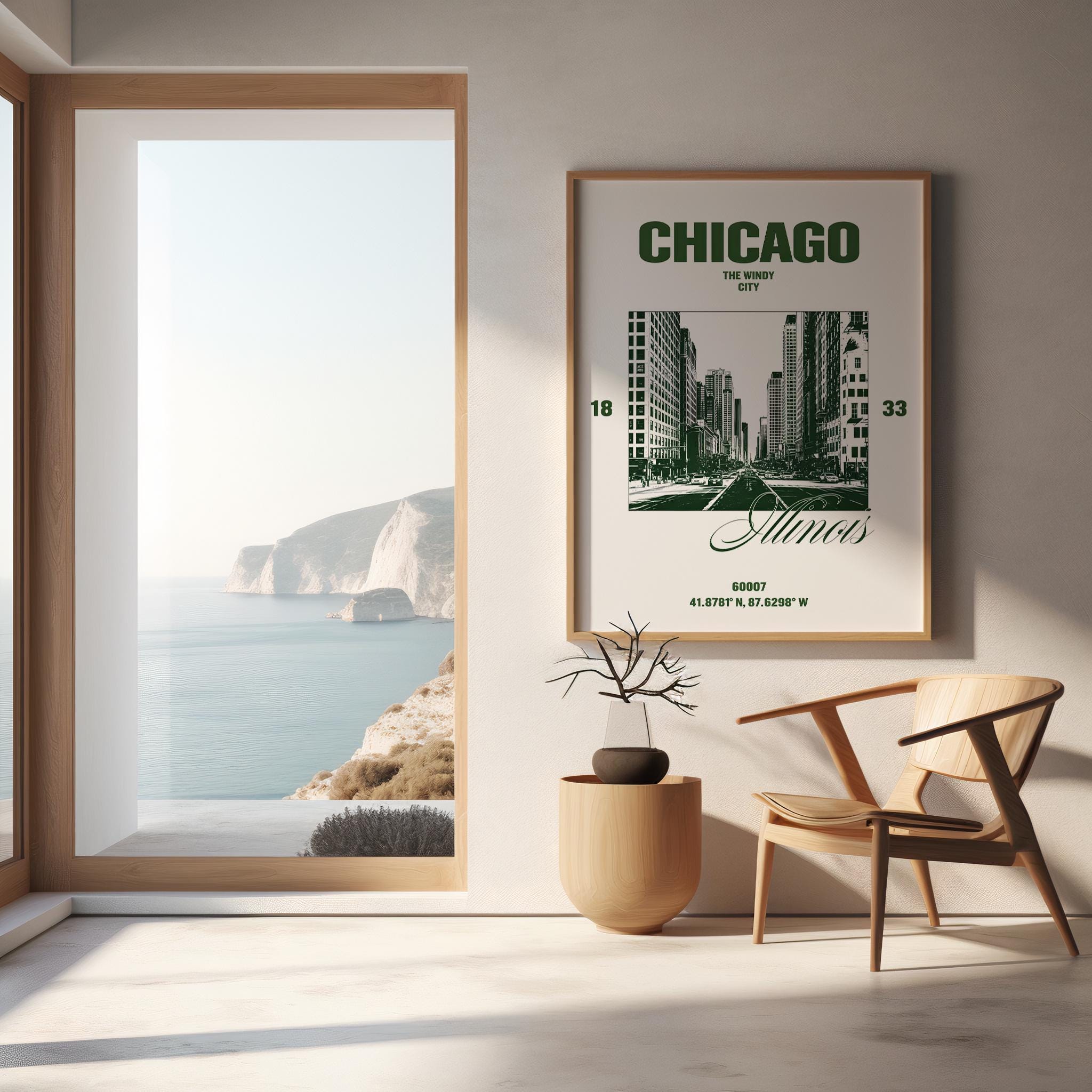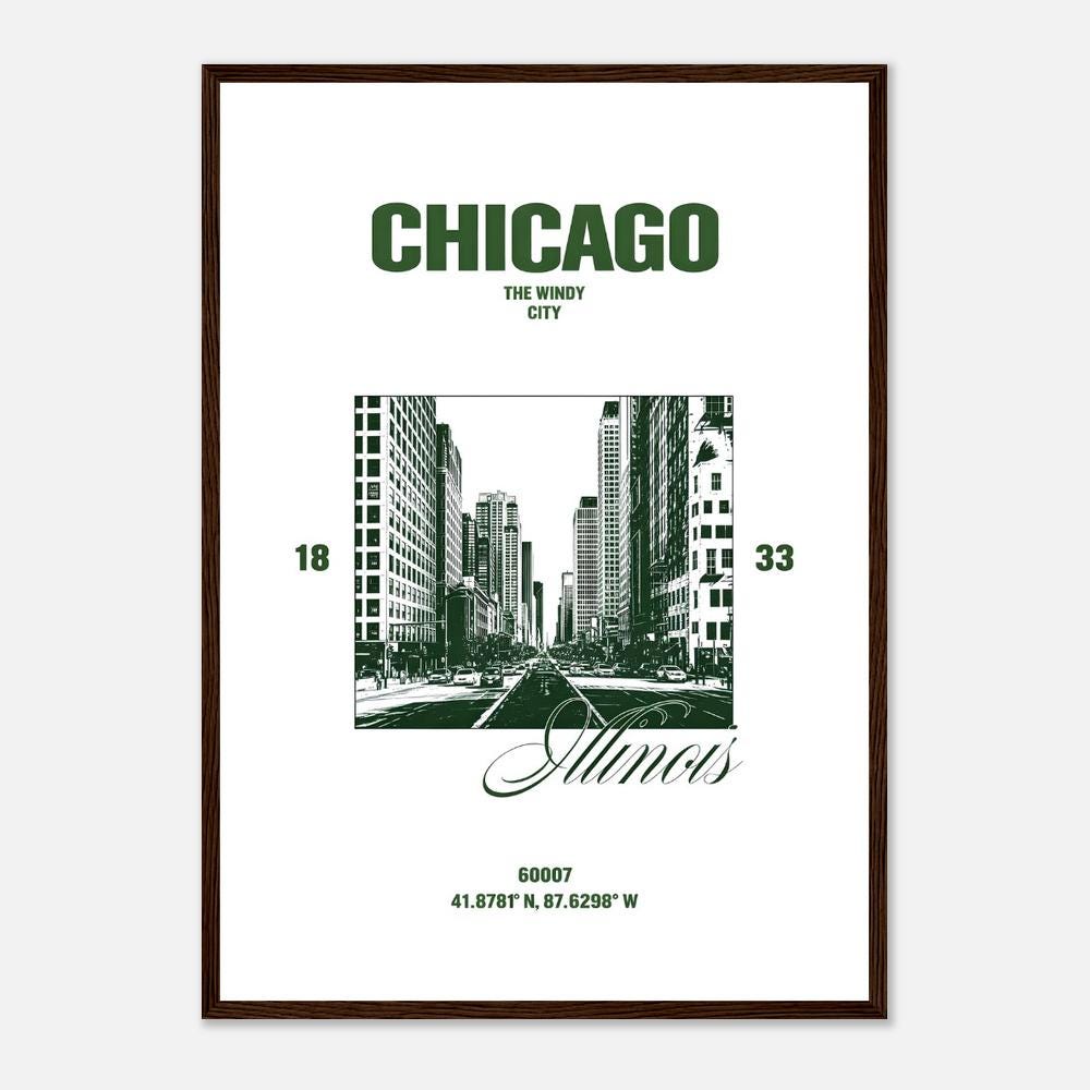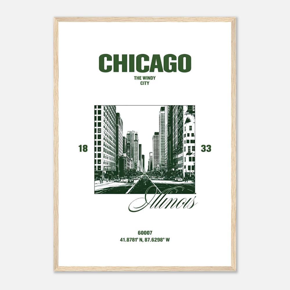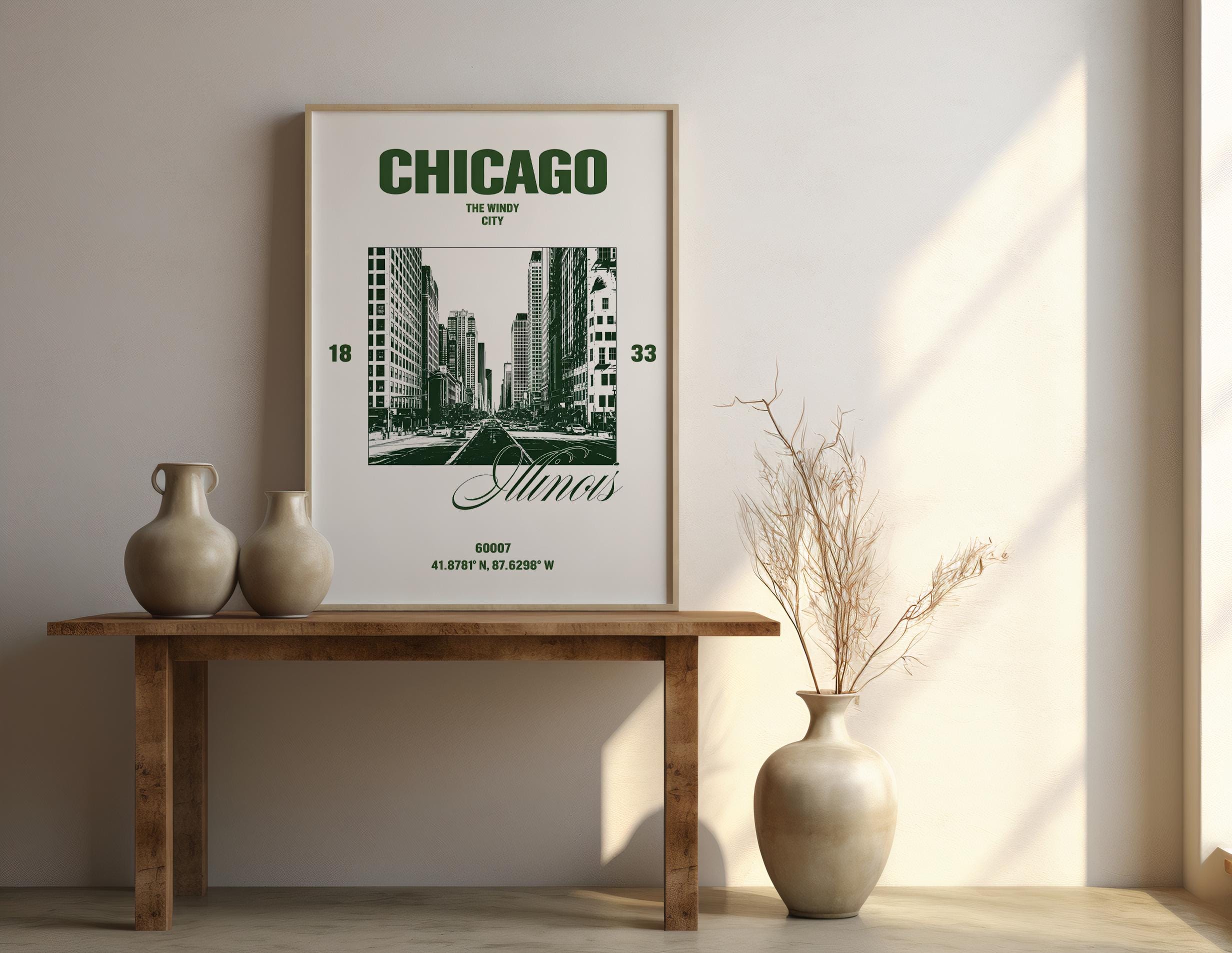 Chicago Green Cityscape Wall Art | Windy City Travel Decor | Framed Poster