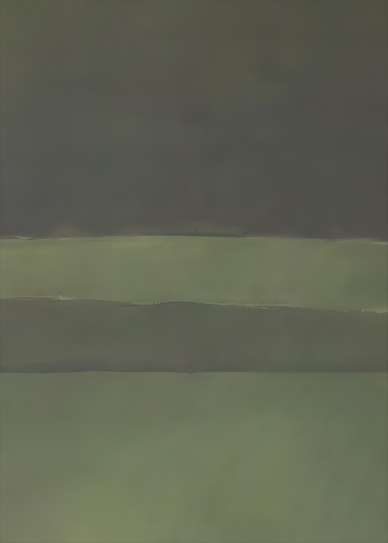 A calming abstract composition featuring layered olive, sage, and deep moss green tones arranged in soft horizontal bands. The subtle transitions and muted palette create a grounded, atmospheric feel — perfect for interiors that embrace organic modern and earthy minimalism.